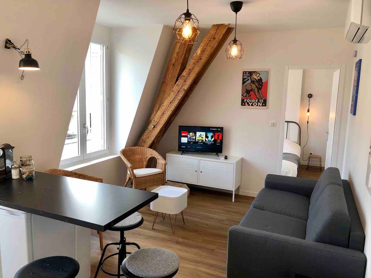 Respetamos el protocolo AIRBNB de limpieza del apartamento INCLUIDO EN EL PRECIO: NETFLIX / LIMPIEZA / APARCAMIENTO EN UN GARAJE CERRADO Y SEGURO / AIRE ACONDICIONADO Clasificado con 3*** por la Oficina de Turismo. Apartamento de 35 m2 con sala de estar, cocina americana, dormitorio cerrado, aseo, cuarto de baño. Sobre Lyon en la planta superior, orientado al SUR