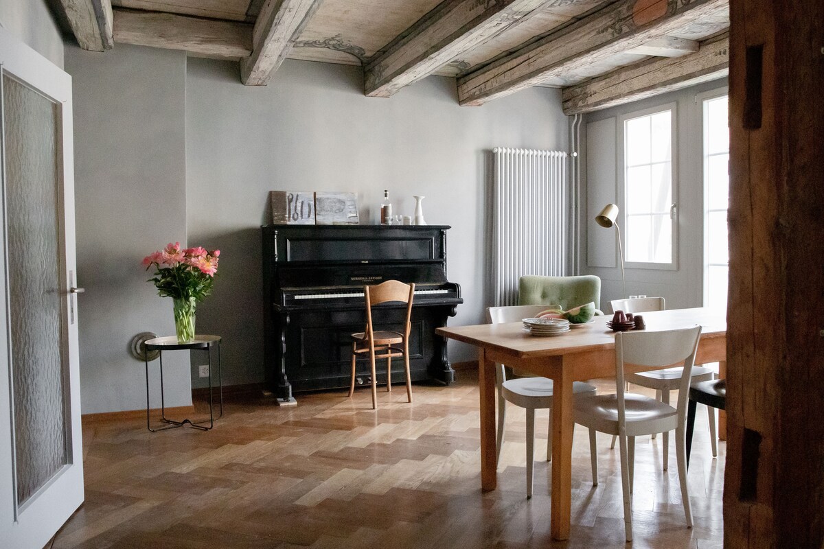 Nuestra casa del casco antiguo se encuentra en la zona peatonal de Aarau. Ofrecemos hermosas habitaciones para viajeros solteros, parejas, amigos o familias. Por la mañana puedes servirte un «desayuno de muesli» abajo. La cafetera y la tetera están en tu habitación. Estamos en el corazón del casco antiguo. Todos los bares y tiendas están a la vuelta de la esquina. Por la noche, puedes escuchar el río corriendo justo debajo de tu dormitorio.