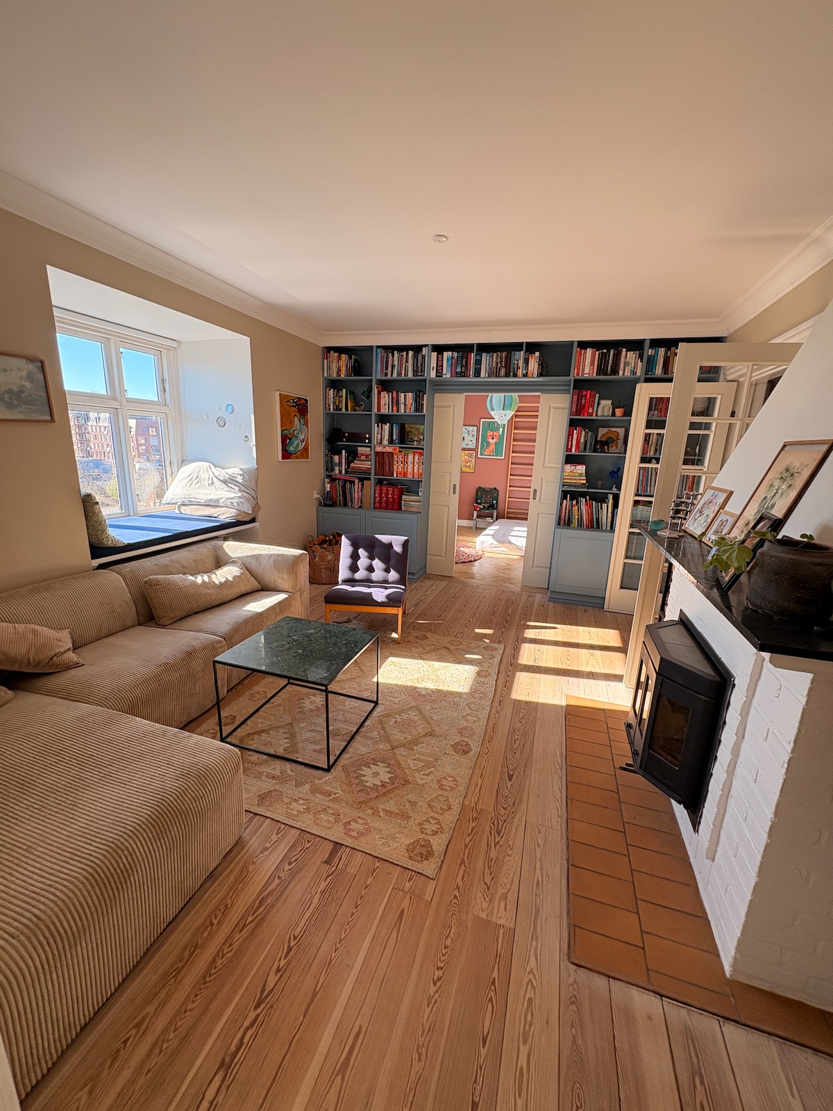 Atraviesa la entrada privada y entra en un interior lleno de imágenes brillantes, fotos clásicas y decoración típica escandinava. El apartamento es la planta baja de nuestra villa diseñada por un arquitecto, y vivimos arriba. Una pequeña terraza sombreada complementa el apartamento de 100 metros cuadrados, que también tiene una estufa de leña y una enorme bañera. El apartamento tiene una cocina totalmente equipada con lavavajillas, un baño con una bañera enorme, un comedor espacioso, una gran sala de estar con chimenea y una cama de ¾, y un dormitorio con una cama de ¾. Se puede añadir una cama supletoria o una cuna. Acceso a lavadora. Tendrás acceso a tu propia terraza privada y aparcamiento gratuito. Tendrás tu propio apartamento independiente con tu propia entrada y una pequeña terraza. Tendrás acceso a la lavandería. El apartamento está en la planta baja de nuestra gran villa. Hemos vivido en Aarhus durante muchos años, nos encanta la ciudad y estaremos encantados de darte aconsejos sobre el barrio y la ciudad. Este apartamento se encuentra en un barrio tranquilo y familiar a solo 2 kilómetros de la ciudad. Camina y monta en bicicleta por el bosque a solo unos pasos y pasea hasta la playa en cuestión de minutos. A pocos pasos del parque de atracciones Tivoli Friheden y del castillo de Marselisborg. Los autobuses urbanos están a la vuelta de la esquina, el tren ligero y la estación de tren están a 3 km. Hay aparcamiento gratuito justo fuera de nuestra puerta. Pero ten cuidado de no estacionar delante de una entrada. Este apartamento forma parte de nuestra villa en un barrio tranquilo y familiar a solo 2 kilómetros de la ciudad. Camina y monta en bicicleta por el bosque a solo unos pasos y pasea hasta la playa en cuestión de minutos. A poca distancia a pie del parque de atracciones Tivoli Friheden y del castillo de Marselisborg.