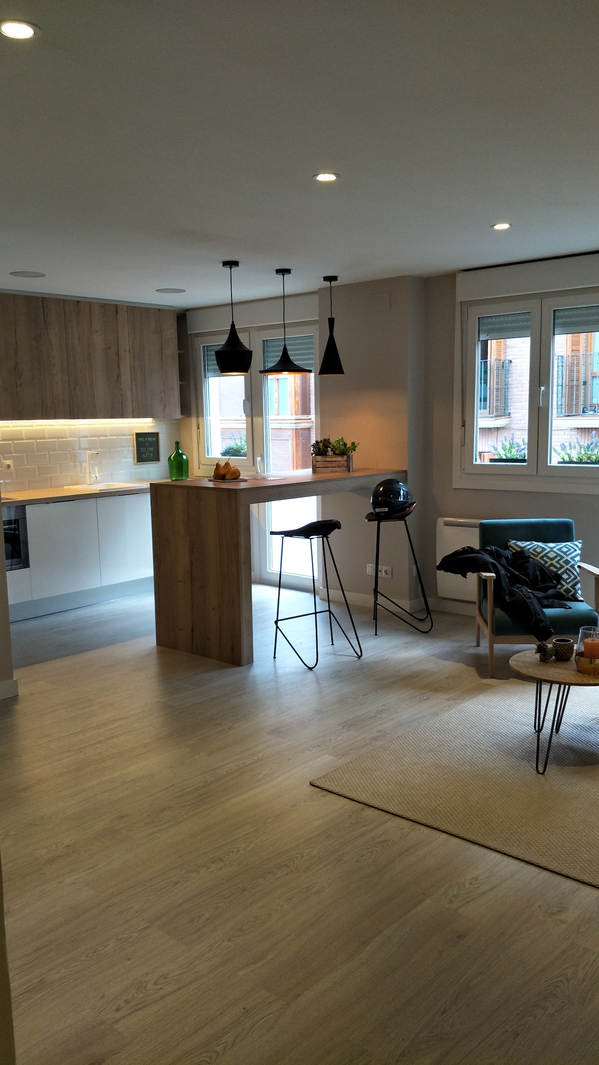 De estilo urbano y acogedor, este nuevo apartamento de un dormitorio con cama kingsize y sofá cama (144x180cm)se encuentra en el corazón del barrio de Gros, a 1 minuto a pie del centro de la ciudad Impecablemente recién reformado cuenta con aire acondicionado, televisión 55", Wifi, Nesspreso. Completamente equipado para niños y bebés. Perfectamente ubicado a 2 minutos de la estación de autobuses y de trenes, así como al lado de una parada directa de autobús para el aeropuerto de San Sebastián.