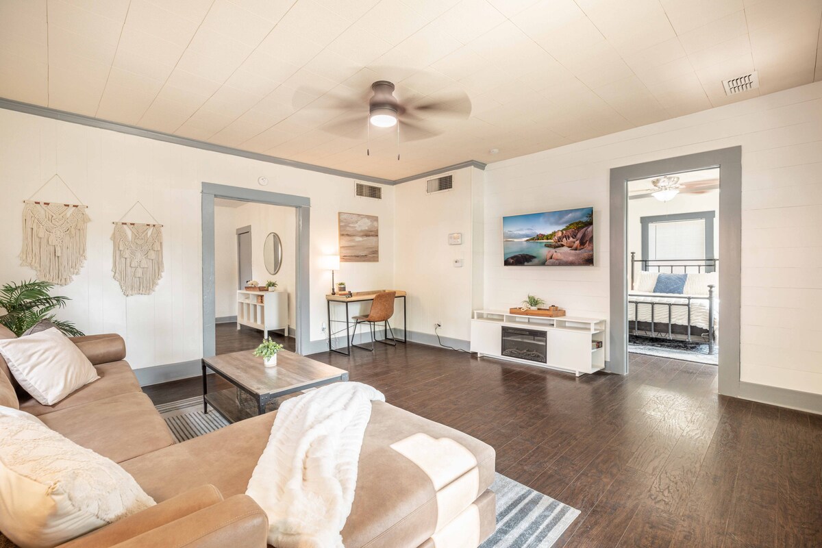 ¡Te invitamos a alojarte en nuestro Meander Retreat! Esta casa ha sido reformada con buen gusto y se encuentra en el histórico barrio de Sayles. Esta encantadora casa de 3 dormitorios y 2 baños tiene capacidad para 7 personas. El dormitorio 1 tiene una cama tamaño queen, el dormitorio 2 tiene una cama de matrimonio con una cama nido doble para dormir hasta 3 huéspedes, y el dormitorio 3 tiene una cama tamaño king. Podemos alojar a familias y, al mismo tiempo, ofrecer un espacio para relajarse y retirarse de la rutina diaria.