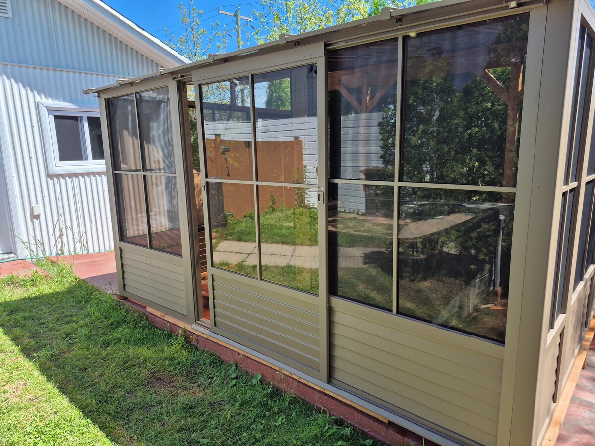 Una suite de lujo única, ropa de cama 100 % algodón, colchón Tempur Pedic, películas con sonido envolvente con iluminación regulable, nevera para vinos, mesa de billar, chimenea, impresionante baño con ducha de vapor, espejo antivaho, toallero con calefacción y asiento de inodoro con bidé. Este encantador refugio para amantes de los libros se encuentra en el centro de New Liskeard, cerca de todo y, sin embargo, completamente privado. Disfruta de tu propia zona de comedor al aire libre con barbacoa, da un paseo por el paseo marítimo o simplemente pon los pies en alto y relájate.