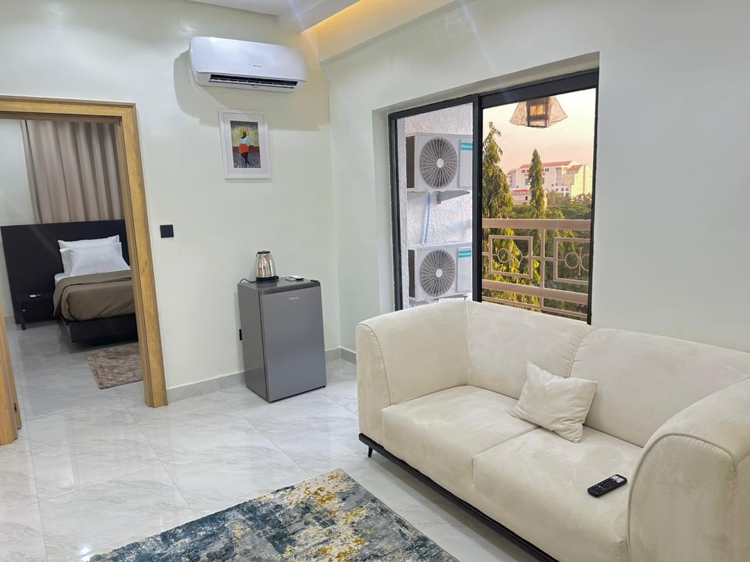 Tastefully and Stylishly Furnished 1 Bedroom Apartment and studio In One of The Prime Locations Of Abuja. Features: 💢Free WiFi. 💢Netflix/ Prime Video. 💢Smart Tv in Rooms. 💢24-Hours Electricity ; Inverter/ Standby Generator. 💢Fully Equipped Kitchen. 💢Security. 💢Ample Parking Space. 💢Fully Air - Conditioned Rooms & Sitting Room. 💢Housekeeping Service. ❌No smoking in the apartment , but can use the Balcony.