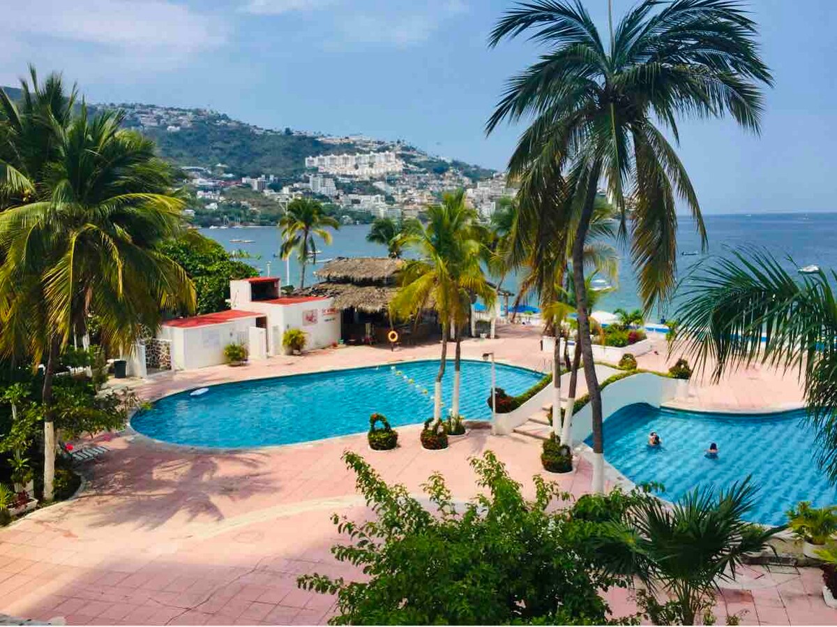 Disfruta de una excelente vista al mar, con alberca y acceso directo a la playa, en una ubicación privilegiada con tiendas de autoservicio, restaurantes, diversión y tiendas de conveniencia a pocos metros. Seguridad y ambiente familiar! Ideal para parejas. IMPORTANTE: DEBIDO AL PASO DEL HURACÁN OTIS LAS ÁREAS COMUNES DEL CONDOMINIO SE ENCUENTRAN EN REMODELACIÓN SIN PERJUDICAR LA ESTANCIA Y LOS SERVICIOS OFRECIDOS.