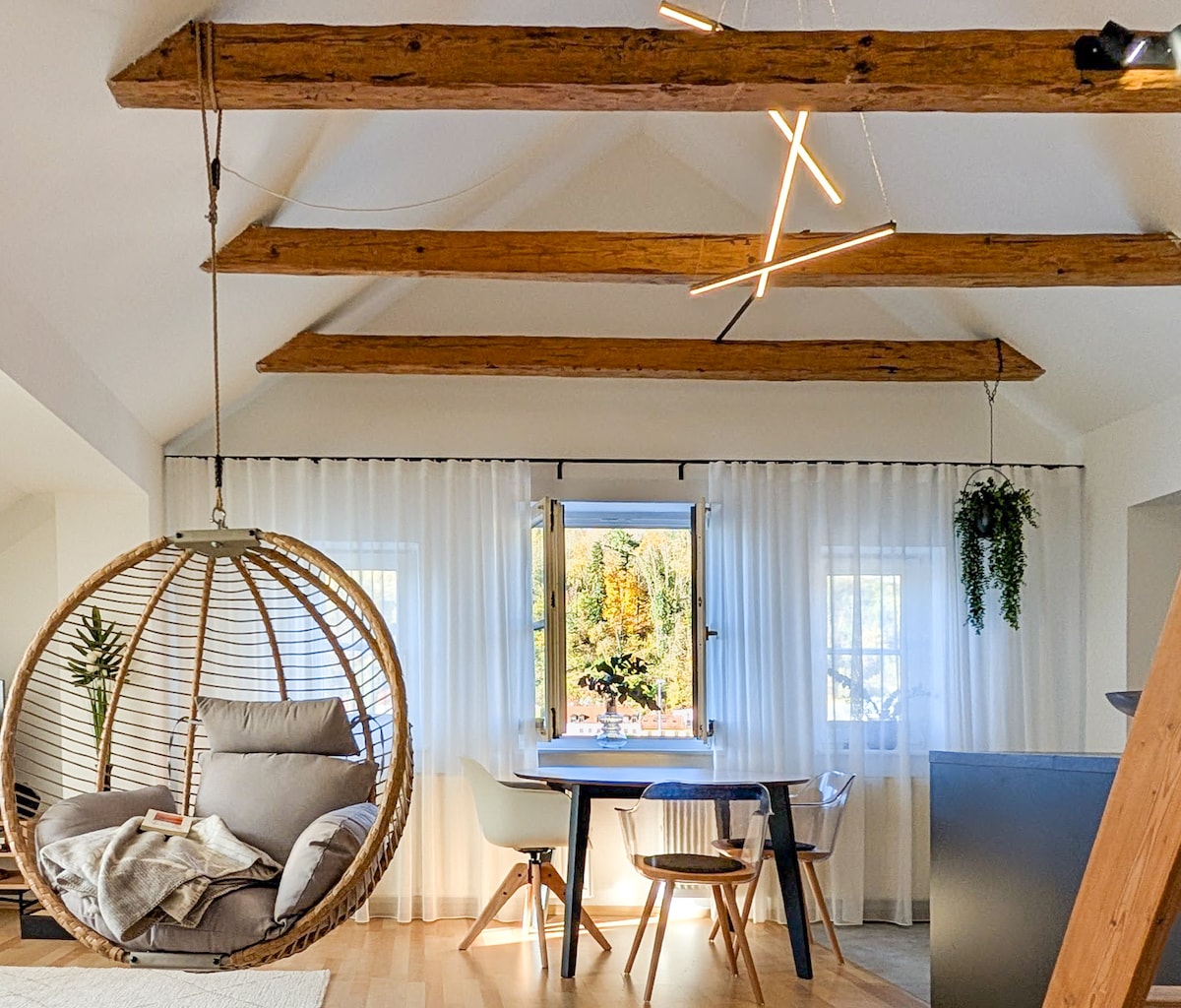 Te damos la bienvenida al ático “Vogelnest” 🕊️✨ Presentado por SMURMELHOMES: tu refugio sobre los tejados de Passau. Estamos encantados de darte la bienvenida a nuestro moderno departamento lleno de luz en el cuarto piso. Queremos que tu estadía en el “Bird's Nest” sea inolvidable, llena de ligereza, alegría y relajación. Así que solo tienes que empacar tu anticipación: nos ocupamos del resto por ti. Nos vemos pronto, Jennifer y Stefan