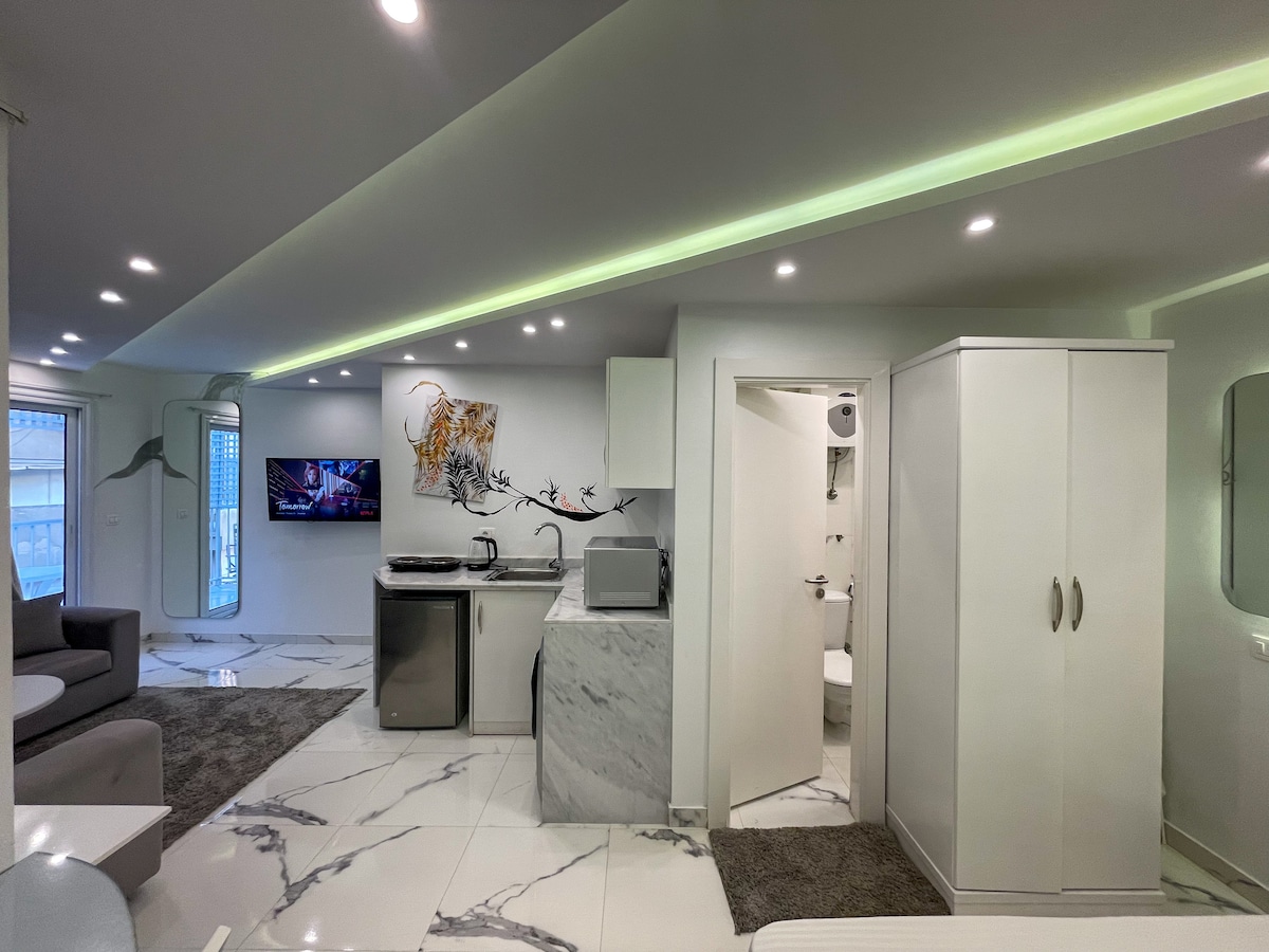 ¡Todo lo que necesitas en un solo lugar! Apartamento tipo estudio con interiores elegantes y un diseño de iluminación excepcional. Establece tu ambiente y comienza a relajarte. Wi-Fi de alta velocidad con pantalla grande inteligente y cómodo sofá cama para tu completa indulgencia, además de una cocina equipada con todos los electrodomésticos modernos. Simplemente se siente como un hotel con las comodidades de un piso moderno. Se encuentra en una zona céntrica donde hay muchas tiendas/cafés/restaurantes cerca. El edificio tiene ascensor y seguridad las 24 horas, todo para tu servicio.