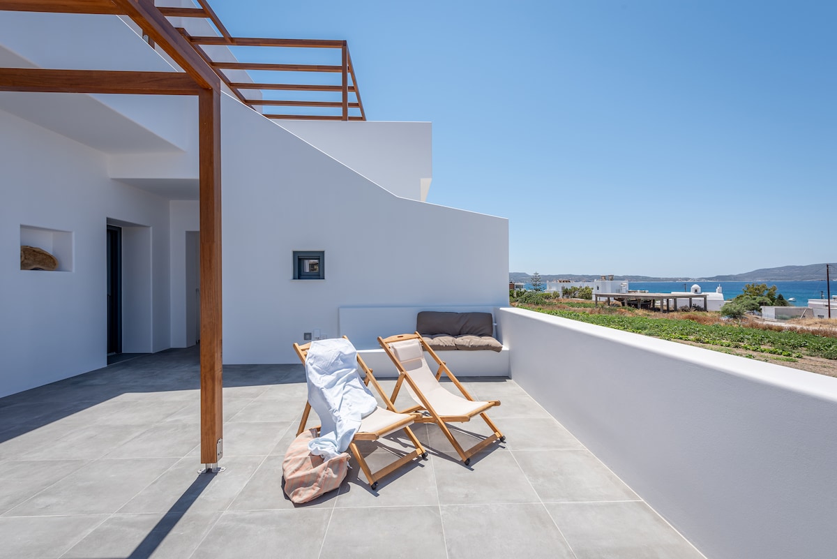 Escápate a la suite exclusiva de D3, una de las seis suites de estilo cicládico donde la elegancia se encuentra con el lujo moderno. Este refugio de planta abierta de 65 m² está diseñado para dos, con una sección de piscina dedicada, vistas panorámicas al mar y desayuno que se sirve diariamente en tu suite. Con una elegante arquitectura de piedra y un entorno sereno a pocos minutos de Plaka, es perfecto para parejas que buscan privacidad, estilo y un toque de indulgencia. Servicio de limpieza diario y recepción de horas limitadas incluidas: tu escapada a Milos te espera.