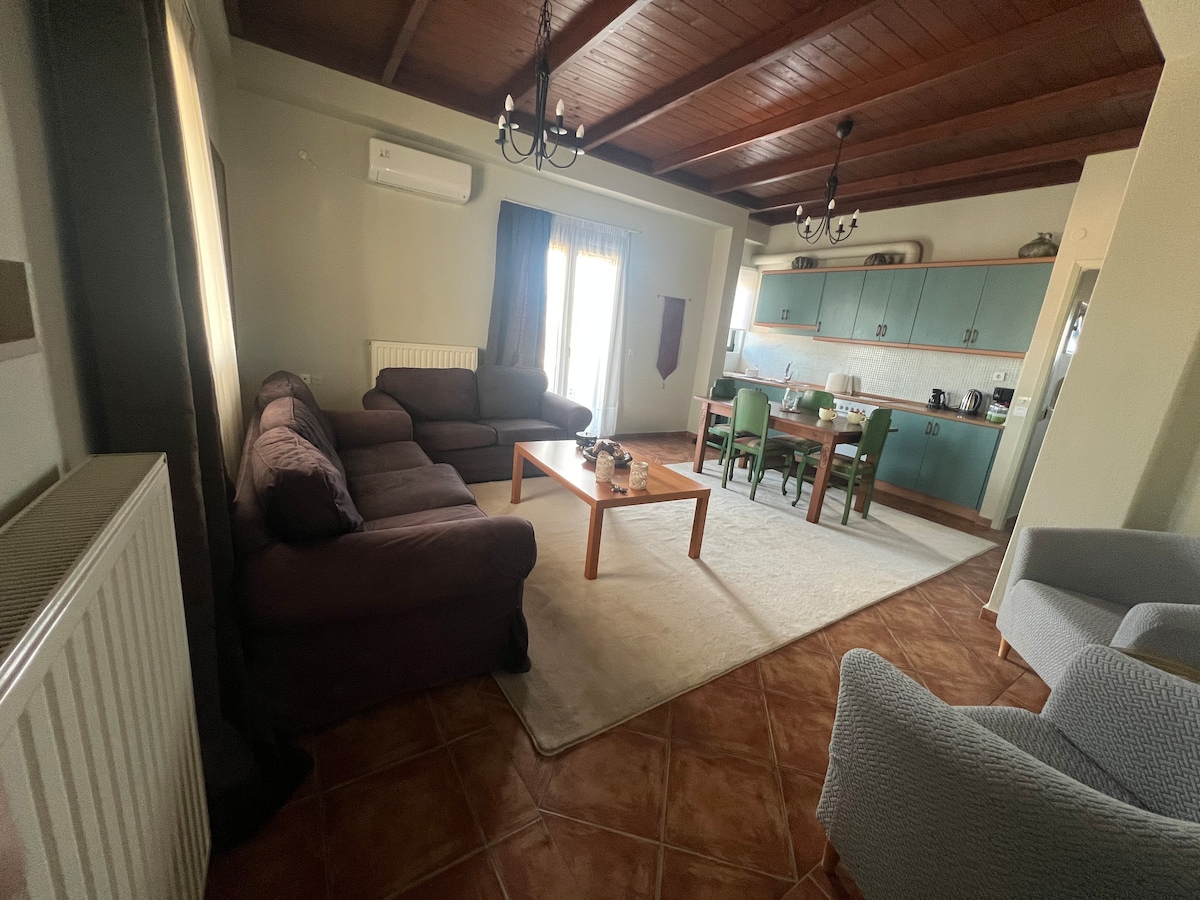 Sobre este espacio. Bienvenidos a Portaria, la joya de Pelion. Nuestro apartamento es un lugar cálido y acogedor para aquellos que quieran descubrir la belleza natural de la montaña, a un paso de la ciudad de Volos. La ubicación es ideal, en las calles empedradas de Portaria, y la casa tiene capacidad para 5 personas.