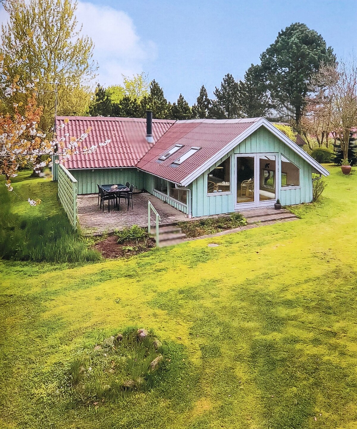 Acogedora casa de verano de 86 m2 con mucho espacio por dentro y por fuera. La casa de verano es libre de humo y se encuentra en la zona de Hesseløje, cerca de Bøjden en un entorno tranquilo. Hay 3 dormitorios (ancho de cama 180, 140, 120), 1 baño, cocina-comedor, sala de estar con vistas a la bahía de Helnæs. Terraza cubierta para los días de lluvia y una gran terraza de madera, donde se puede disfrutar de la puesta de sol en verano. Hay una corta distancia a una buena playa y zona natural. Posibilidad de pesca costera y kayak. La leña para la estufa de leña NO está incluida.