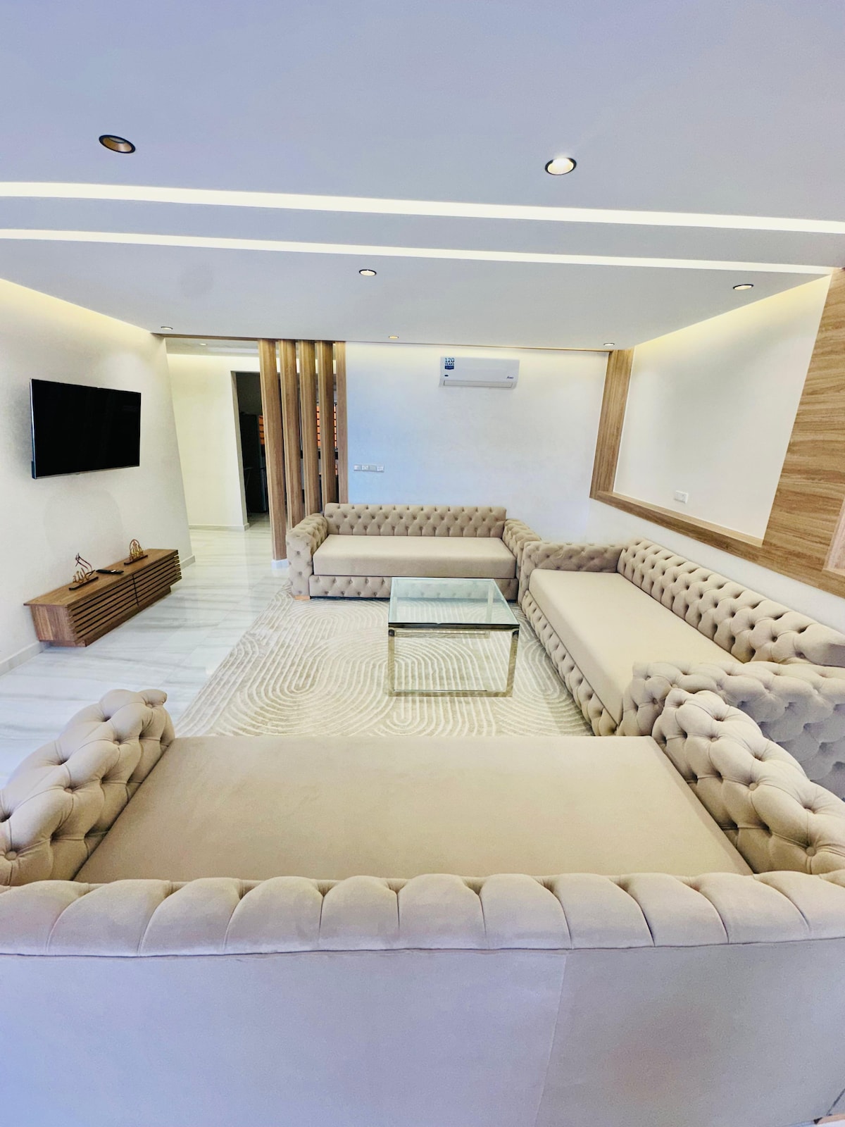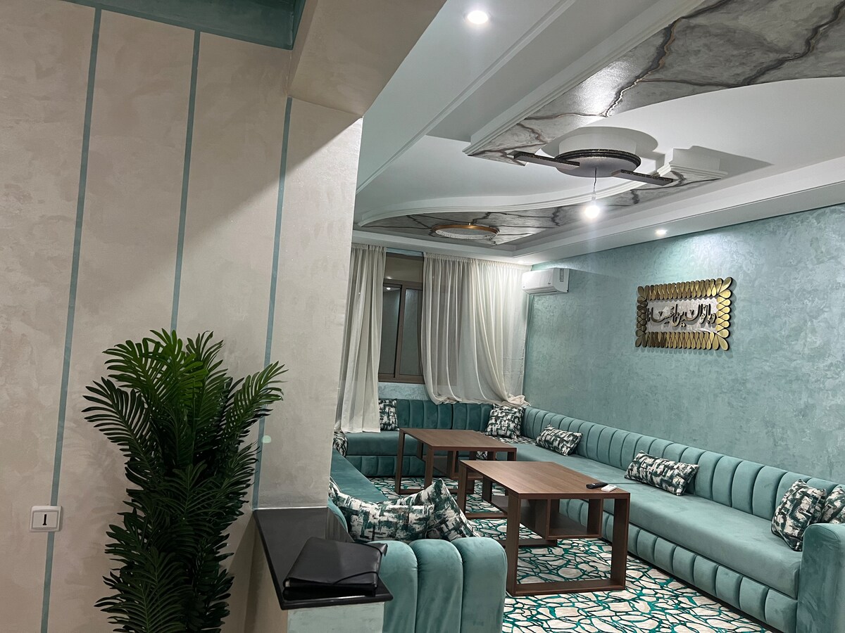 Appartement moderne et calme à Beni Mellal, idéal pour familles ou groupes. Il comprend un grand salon marocain, un petit salon américain, 2 chambres (4 couchages), une cuisine équipée, une douche et 3 grands balcons. Profitez du Wi-Fi fibre, climatisation, machine à laver, TV connectée avec Netflix et électroménagers neufs. Situé dans un quartier paisible, proche des commerces. - me fournir une carte d’identité est très important. - pas d’alcool dans le logement.