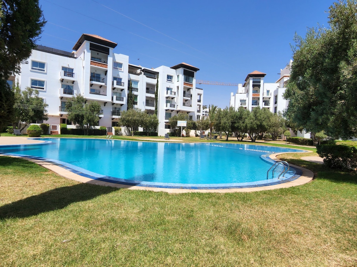 Moderno 2 dormitorios con jardín y piscina (Bahía de Agadir)