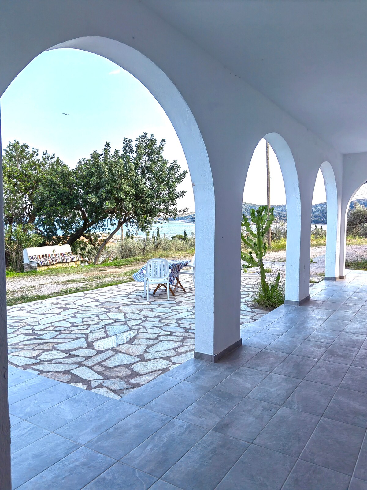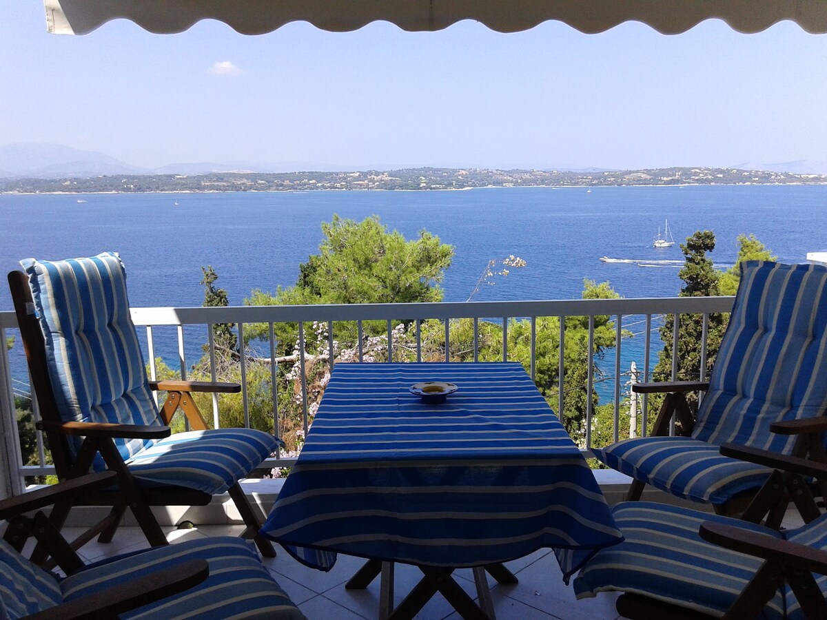 Un hermoso apartamento de verano con una vista única al mar a pocos metros de la playa de Askeli, una de las más bellas de la isla de Poros. El apartamento está totalmente amueblado, es espacioso y soleado, decorado con amor, logramos crear un ambiente muy relajante y cómodo. Su encantadora terraza amplia con la cautivadora vista al mar y el colorido jardín añaden una sensación de tranquilidad y relajación. Para los calurosos días de verano, los 3 dormitorios tienen aire acondicionado y ventiladores de techo. Ideal para vacaciones familiares y escapadas románticas. Una isla que combina playas de arena con hermosos paisajes forestales. La ubicación está a 15 minutos a pie o a 5 minutos en autobús del centro de Poros. Explora el pueblo, da largos paseos junto al mar, cena en las tradicionales tabernas griegas y toma los pintorescos barcos tradicionales para explorar la isla. La isla de Poros cuenta con rutas marítimas y por carretera desde Atenas. Por mar (desde el puerto del Pireo se puede llegar a la isla en poco más de una hora utilizando los servicios rápidos de delfines y catamaranes, o bien conduciendo desde Atenas hasta la ciudad costera de Galatas (donde los transbordadores de automóviles prestan servicio a la isla cada 30 minutos) se puede llegar en 2 horas y media.