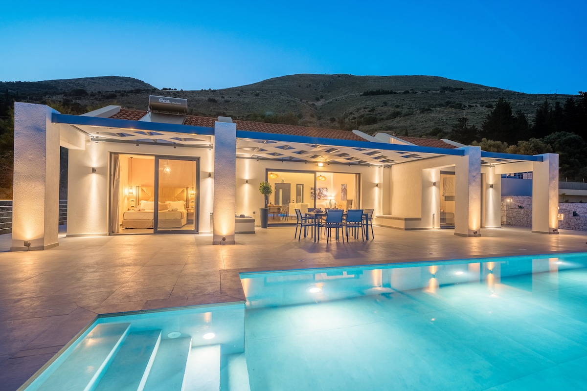 Este espacio único tiene su propio estilo. La villa se completó en junio de 2023 y cuenta con una piscina infinita y unas vistas maravillosas al mar. Tiene 2 dormitorios y 2 baños y tiene capacidad para 4 personas. Se encuentra en Agia Efimia, un hermoso puerto con muchas opciones de cafeterías y restaurantes.