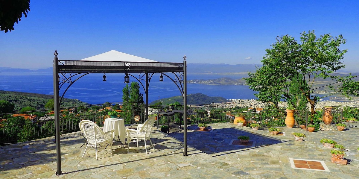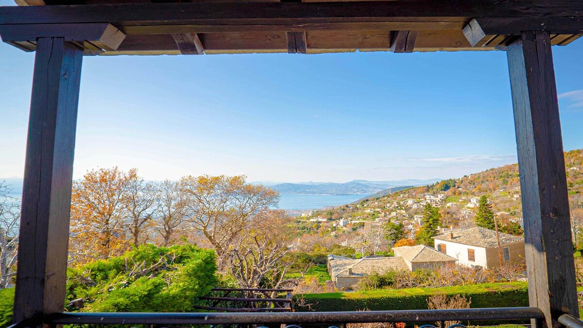 Zelis In Pelion Greece está en un lugar sereno en Pelion, hasta un punto en el que los huéspedes tienen una vista panorámica del golfo de Pagasitikos, disfrutando de puestas de sol únicas. Desde la terraza del alojamiento y su hermoso patio verde disfrutarás de tu desayuno o comida contemplando el mar y al mismo tiempo el encantador Pelion, con el sonido de los ruiseñores y el agua corriendo en nuestro arroyo. El encanto también es por la noche bajo el cielo con las estrellas.