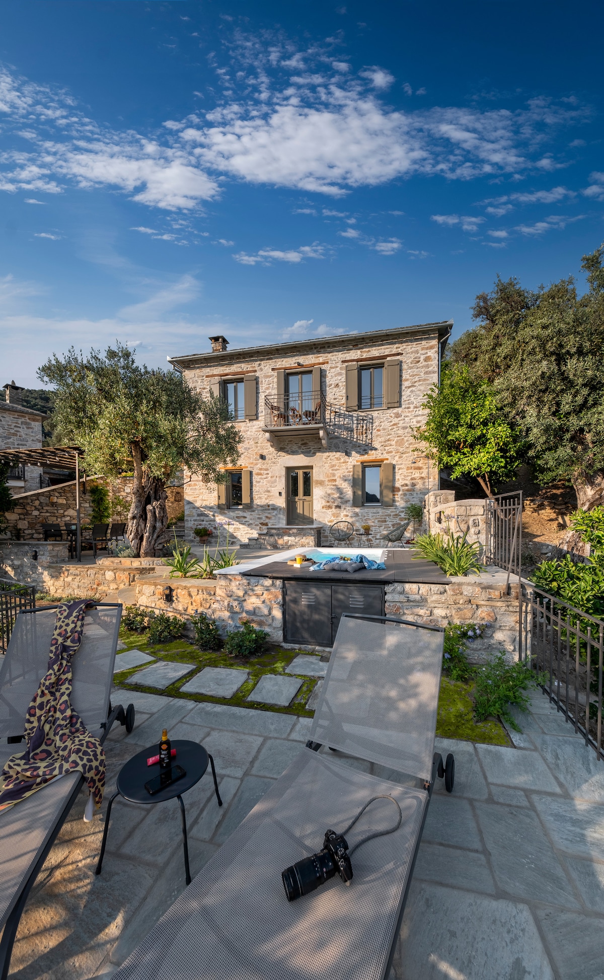 Al pie de Pelión, donde la montaña de los Centauros se encuentra con el azul del Golfo Pagasético, esta casa de piedra ofrece una experiencia de vida que equilibra entre autenticidad y lujo. Rodeada de un olivar centenario, la casa irradia calidez, comodidad y alta estética. Aquí, la tranquilidad del paisaje se encuentra con la calidad de una verdadera escapada, donde cada detalle está diseñado para ofrecer relajación, armonía y una profunda sensación de bienestar.