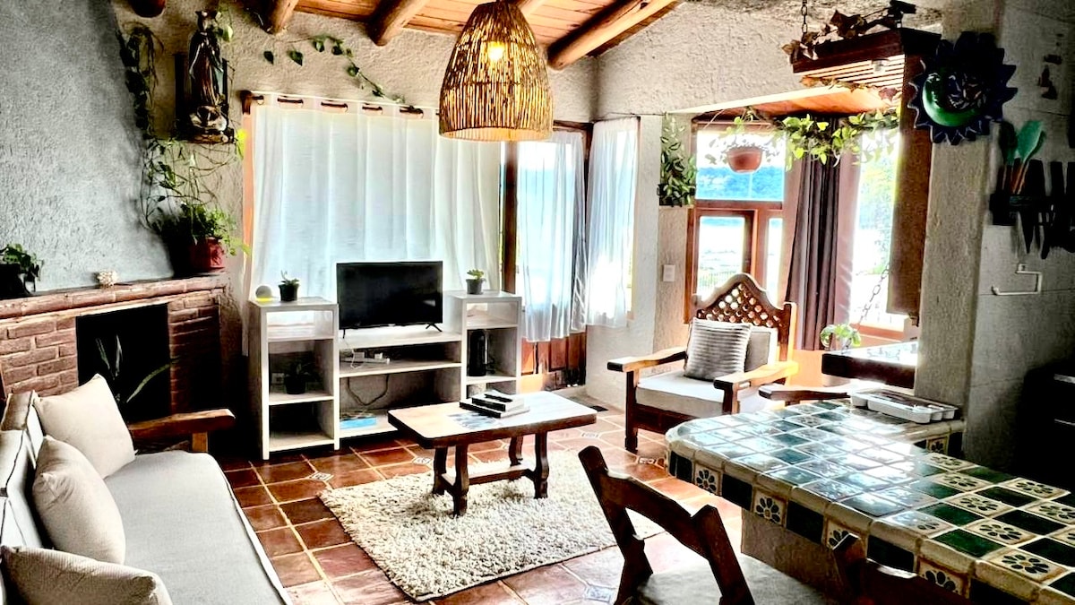 Es una increíble casa de campo en una huerta de aguacates. Ubicada en San Juan Atezcapan a corta distancia de Valle de Bravo. Es ideal para retiros y escapadas de la ciudad, para días de descanso y desconecte. Está configurada en dos bloques. En una parte están los espacios públicos, una sala o estancia, comedor, cocina con un baño y un desayunador al exterior. Inmediatamente a un lado están los espacios de descanso. Una habitación principal con cama king, armario, terraza y su propio baño.