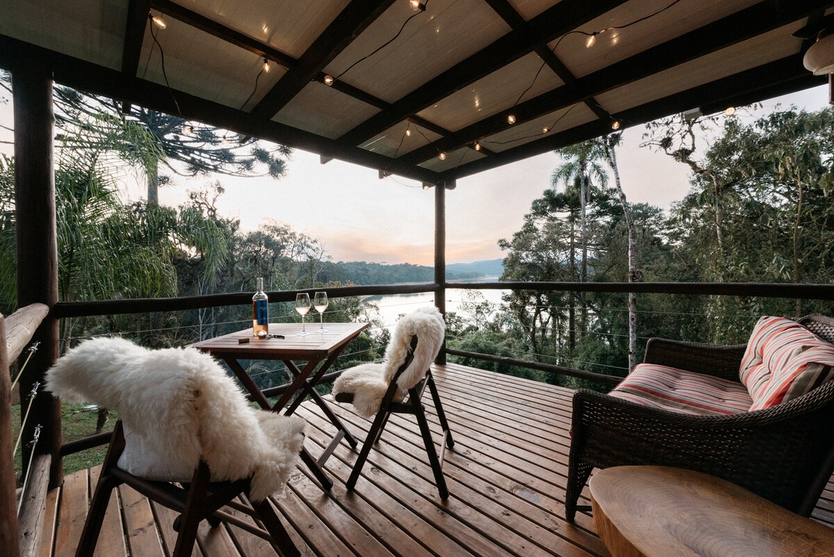 Cabaña de alta gama ubicada en la zona rural de São José dos Pinhais en una propiedad segura, rodeada de naturaleza increíble. * Se incluye una cesta de desayuno proporcional al número de noches, cesta disponible a la llegada. * Relájate en nuestro hidromasaje interno. * Chimenea * Aire acondicionado * Fogata * Cocina totalmente equipada (refrigerador, sándwichera, estufa, horno, microondas, cafetera, ollas y utensilios). * TV inteligente. * Internet. * Calefacción a gas. * Local para 2 personas (+18)
