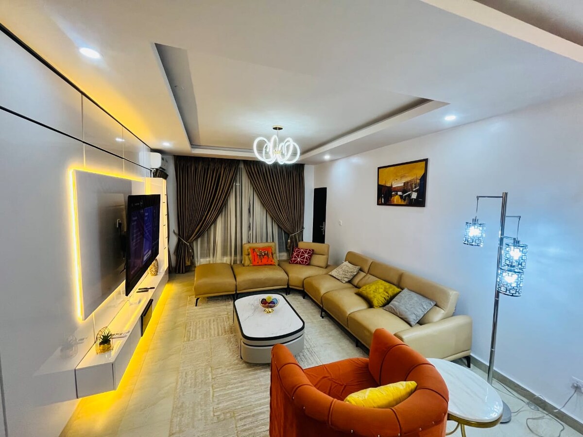 " Beautifully furnished 2 bedroom apartment located in a gated and secured environment within Lekki. Equipped with smart tvs (Alexa, Netflix and amazon prime), unlimited internet, 24 hrs power supply/Solar, DSTV premium, Ring video bell, fully air conditioned, water heaters, card/board games, parking space, fully equipped kitchen with microwave, refrigerator and kitchen utensils, washing machine, house keeper and/or in chef on request". We are here to give you a home away from home experience