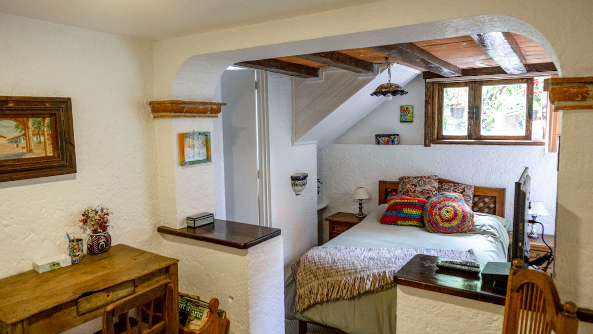 Located in Coyoacán, typical Mexican neighborhood surrounded by markets, museums and historical buildings, a few blocks from Museu Frida Khalo, this house was the first studio for the painter and muralist José Clemente Orozco, who designed and build it between 1921 and 1923. It´s a complete one room apartment with a small kitchen (queen-size bed, 40 inches Smart tv, work-space, full prived bathroom). It has a big and beautiful garden shared by 2 houses (smoking allowed only in the garden).