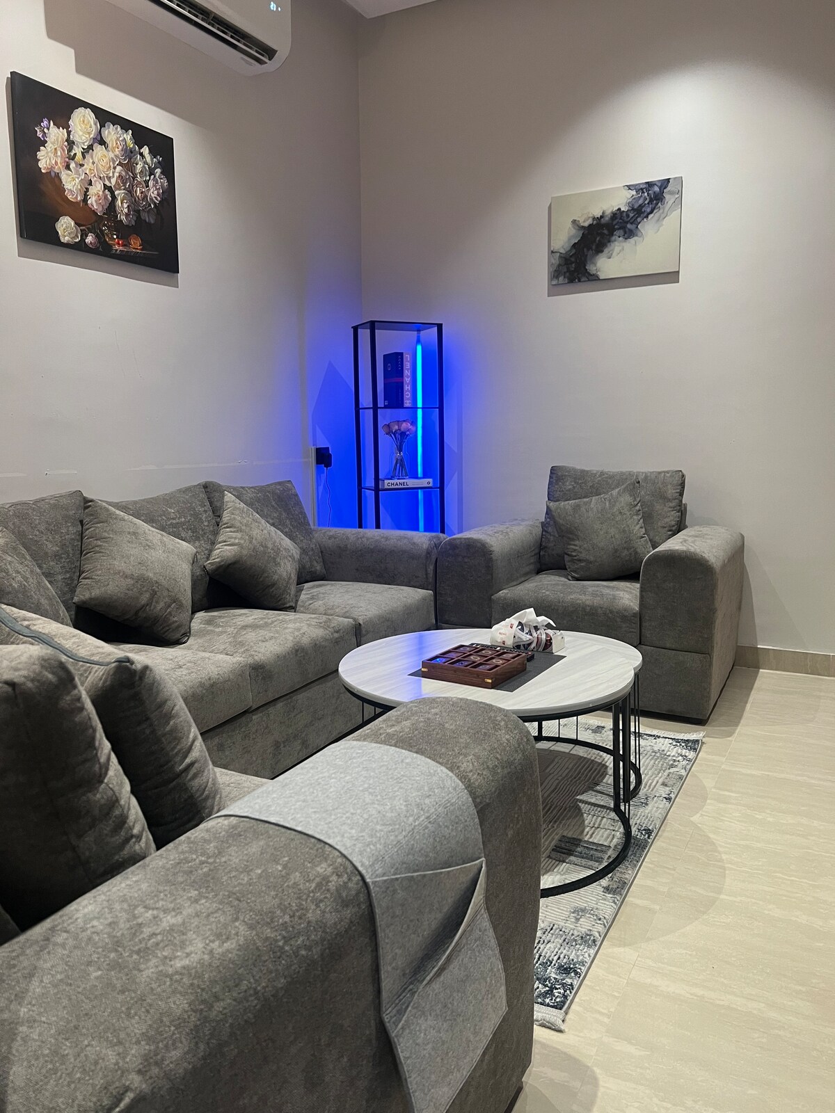 Relájate en esta tranquila y elegante residencia con tu familia. El moderno apartamento, amueblado con amor, ofrece la mejor combinación de lujo y comodidad para añadir un toque especial a tu estancia. Se ubica en uno de los vecindarios más populares de Al Khobar y Dammam, con una mezcla de cafés y restaurantes cerca. Totalmente equipado con electrodomésticos modernos, que incluyen una estufa, nevera, todos los utensilios de cocina necesarios para preparar comidas, una lavadora, un moderno televisor TCL QLED. Baño elegante y limpio y artículos de tocador básicos