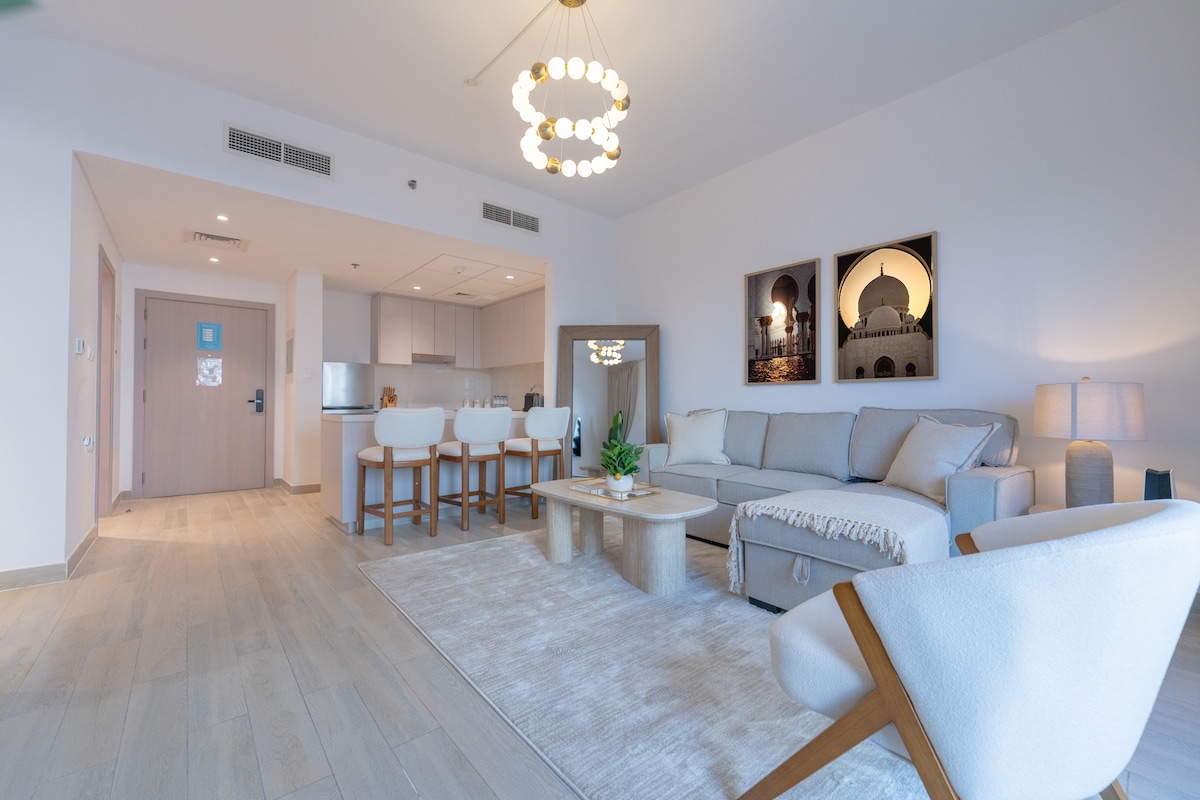 Bienvenido a Bright Oasis, un estudio elegante en Yas Island con comodidad moderna y elegancia. Disfruta de un espacio soleado con vistas impresionantes, wifi de alta velocidad, Smart TV y una cocina totalmente equipada. Relájate en el balcón privado o explora las atracciones cercanas como Yas Marina, Ferrari World y Yas Mall. El acceso a una piscina comunitaria, un gimnasio y un aparcamiento privado lo convierten en el refugio urbano perfecto para una estancia tranquila y cómoda.