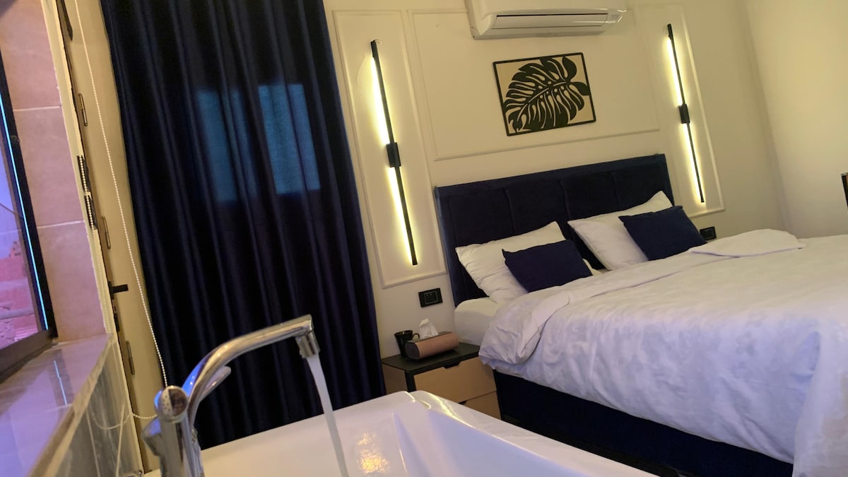 Disfruta de tu estancia con vistas panorámicas a las pirámides de Guiza y la esfinge ¡Sí! Las vistas y las imágenes son 100 % reales. (Asegúrate de consultar también nuestros otros anuncios) Disfruta de una vista impresionante de todas las pirámides de Guiza desde cualquier lugar dentro de este estudio oriental contemporáneo o mientras te relajas en el jacuzzi. También está a 10 minutos a pie de la puerta de entrada de las pirámides. Para aprovechar al máximo tu viaje, ¡no te pierdas nuestras experiencias! Tenemos el firme compromiso de ofrecer a nuestros huéspedes la hospitalidad mágica que se merecen.