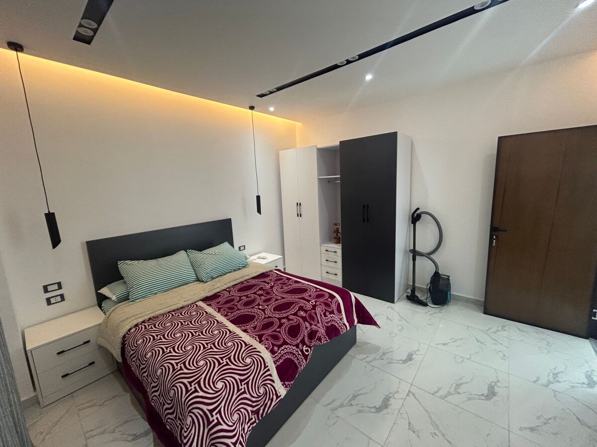 🏡 Apartamento de lujo en transporte público Un apartamento espacioso y totalmente amueblado con muebles modernos. Dos dormitorios tienen un cómodo hotel, un moderno salón con TV inteligente y WiFi, y una cocina totalmente equipada. 🛁 Un baño de lujo con jabón, champú y una consulta gratuita para todos los huéspedes. Ubicado en el tercer piso (sin ascensor), con una ubicación privilegiada en una zona recreativa, cerca de Carrefour Transit y el aeropuerto. ✅ Servicios destacados: • Aire acondicionado • Limpieza gratuita para estancias largas. • Iluminación automática por apagón • Disponibilidad de transporte especial a petición. Ideal para familias y jóvenes, mejor que los hoteles de lujo ✨