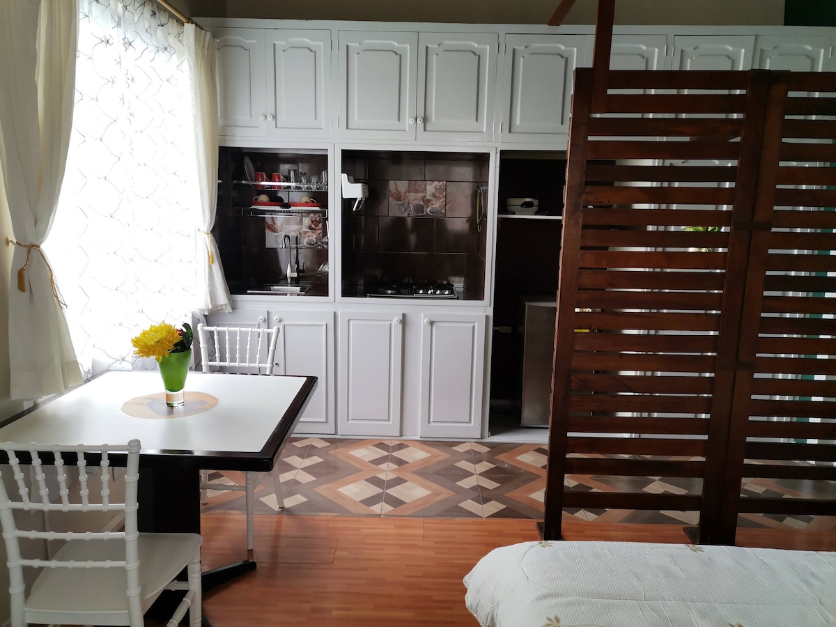 Ubicada en el mejor sector del Valle de los Chillos, a 5 minutos del Centro Comercial SAN LUIS SHOPPING, al lado del ANTOJO MANABITA. En contacto con la naturaleza y lugares de interés turístico, rodeado de restaurantes, almacenes, farmacias y todo lo necesario para una estadía agradable y segura. Suite en un segundo piso, viene completamente equipada con baño y ducha privada, cocina, refrigerador, microondas, 1 cama de 2 plazas, parqueadero privado.