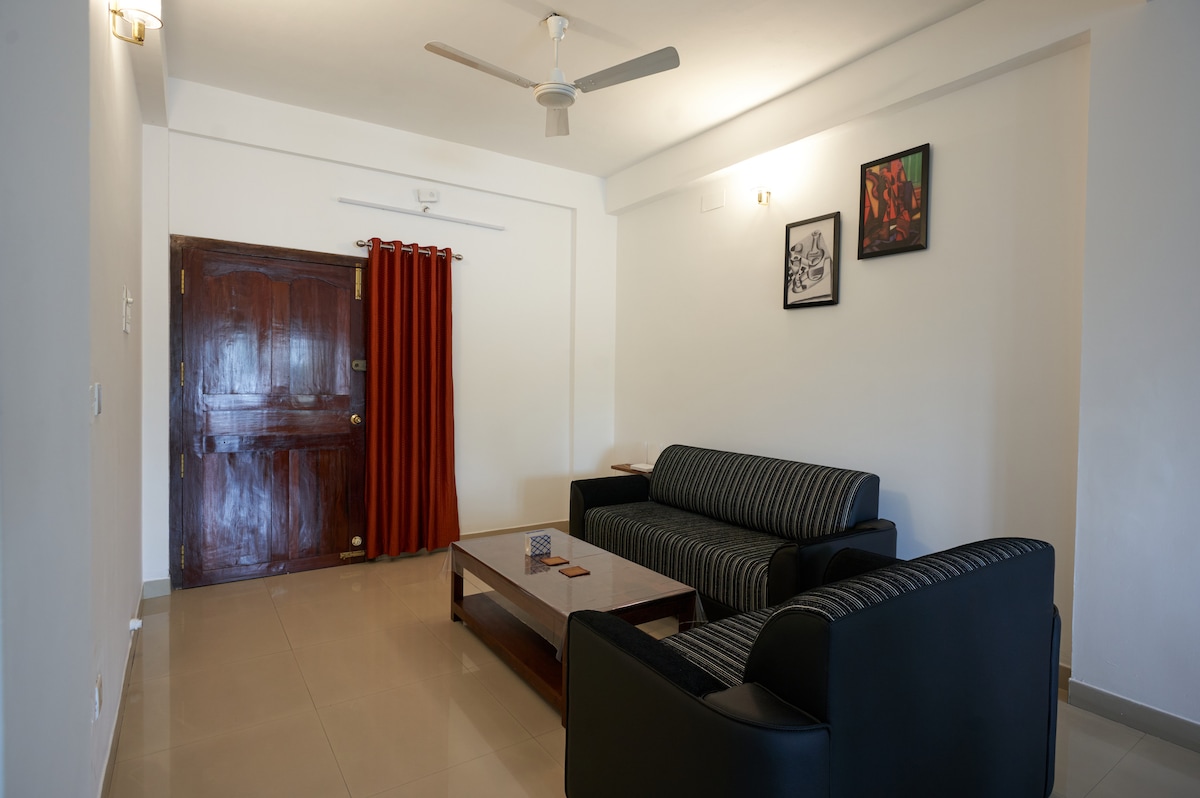 This 51 square meter furnished apartment is on the second floor. The apartment has a spacious Living room , kitchenette and an air-conditioned bedroom with attached bath and a balcony overlooking the street. The breakfast provided is home cooked and traditional Kerala cuisine. Our promise is to provide as much care, comfort and peace you would get in a star-rated hotel, with the personal and sociable touch that is synonymous with Home Stays.
