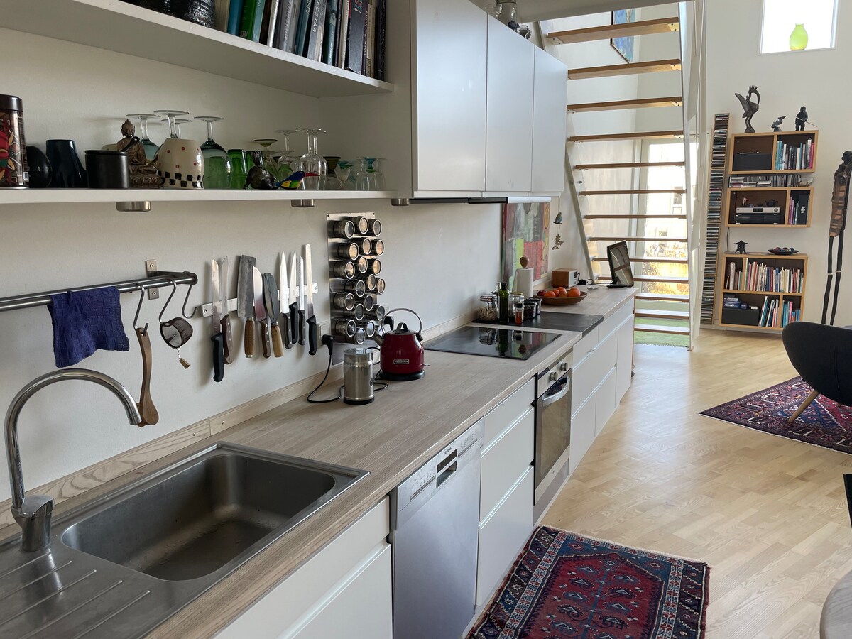Nuestro lugar está a 10-15 minutos a pie de la estación de tren y está a 9 paradas del centro de Copenhague (20 minutos) Las tiendas están a pocos pasos y la playa de Vallensbaek está a 18 minutos en bicicleta del apartamento. Wifi, lavadora, ducha, chimenea eléctrica, tocadiscos y utensilios de cocina están disponibles para ti.