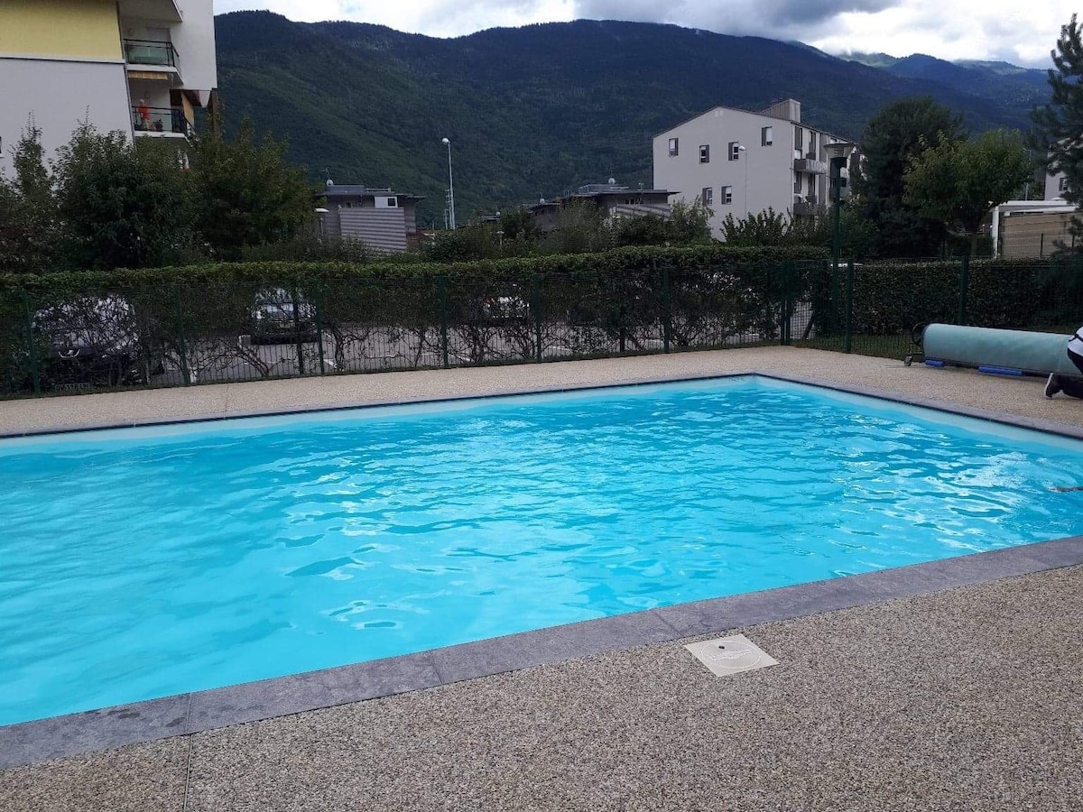Apartamento en planta baja, funcional decorado con buen gusto, ideal para parejas con o sin hijos, entre amigos, en una residencia tranquila rodeada de montañas. La piscina cubierta y al aire libre y la sauna contribuirán a su relajación (gratis) ALQUILER DE BICICLETAS posible en la residencia (de pago)🚴🏼♂️ Pista de tenis y petanca. JUEGOS al aire libre para niños. Muy cerca del Golf de Giez, del carril bici, a 5 minutos del lago de Annecy (🚗) Terraza abierta privada.
