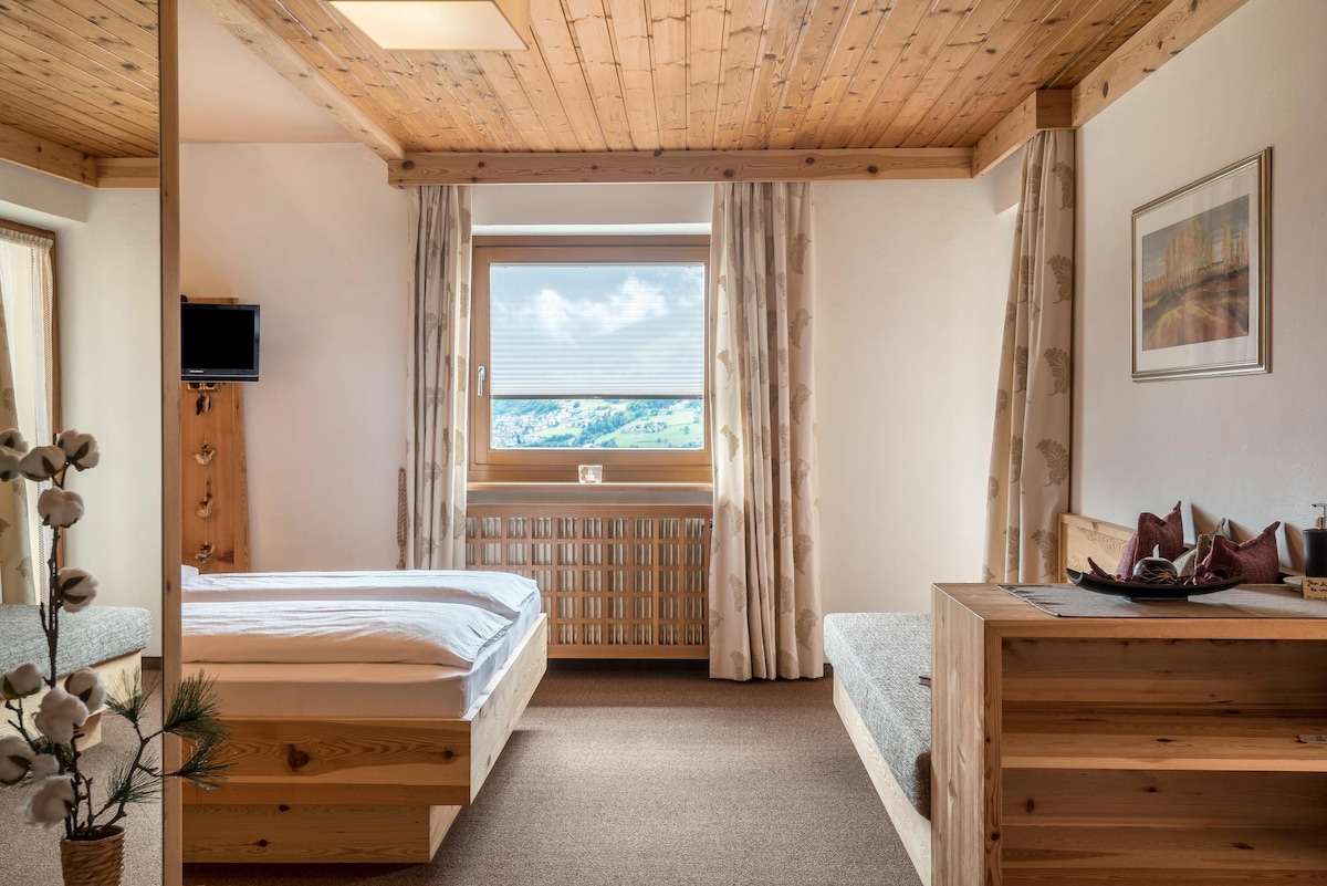 El acogedor apartamento "Living Suite" es la residencia "Sonnegg" se encuentra en la idílica municipalidad de Lajen (Laion), cerca de la entrada de Val Gardena, en el pintoresco valle "Eisacktal" del Tirol del Sur (Valle Isarco). El apartamento de 65 m² consta de una sala de estar, una cocina bien equipada con lavavajillas, 2 dormitorios y un cuarto de baño, y tiene capacidad para 3 personas. Los servicios adicionales incluyen Wi-Fi y televisión por satélite.