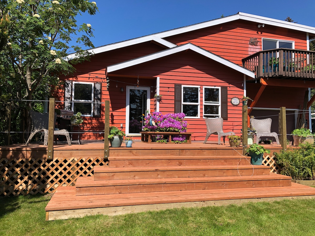 ¡Ven a sentir el rocío del océano Pacífico! Nuestro apartamento de 2 dormitorios y su espectacular terraza te colocan casi en la cima del océano. Verás nutrias, frailecillos, águilas calvas, martines pescadores lo suficientemente cerca como para sentir que puedes tocarlos. Con una ubicación ideal para la aventura: a solo 5 minutos a pie de los impresionantes senderos del Parque Estatal Abercrombie, el sendero Island Lake Creek y la playa Mill Bay. Tiendas a menos de 1,6 km de distancia.