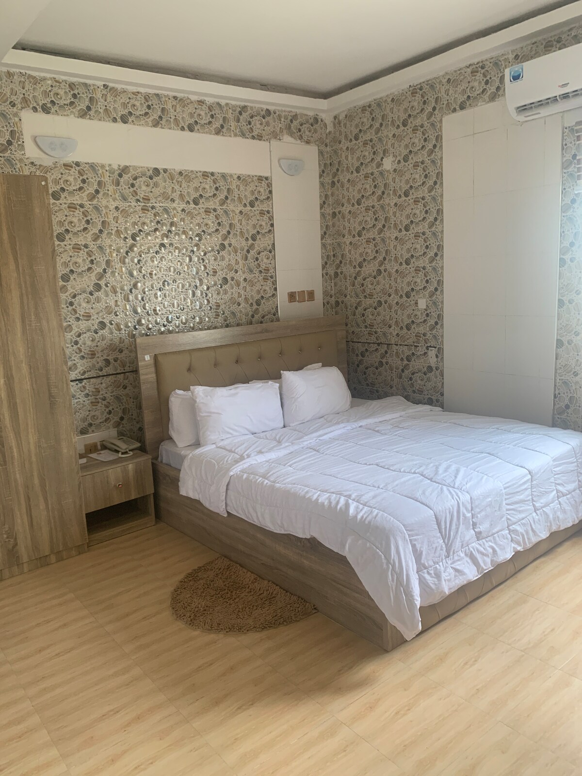 Tastefully furnished rooms in a well secure and serene estate in Ikeja. 10 minutes from the airports and 5 minutes from the city centre. Fully serviced with free WIFI, private parking, and with a well stocked bar and restaurant.