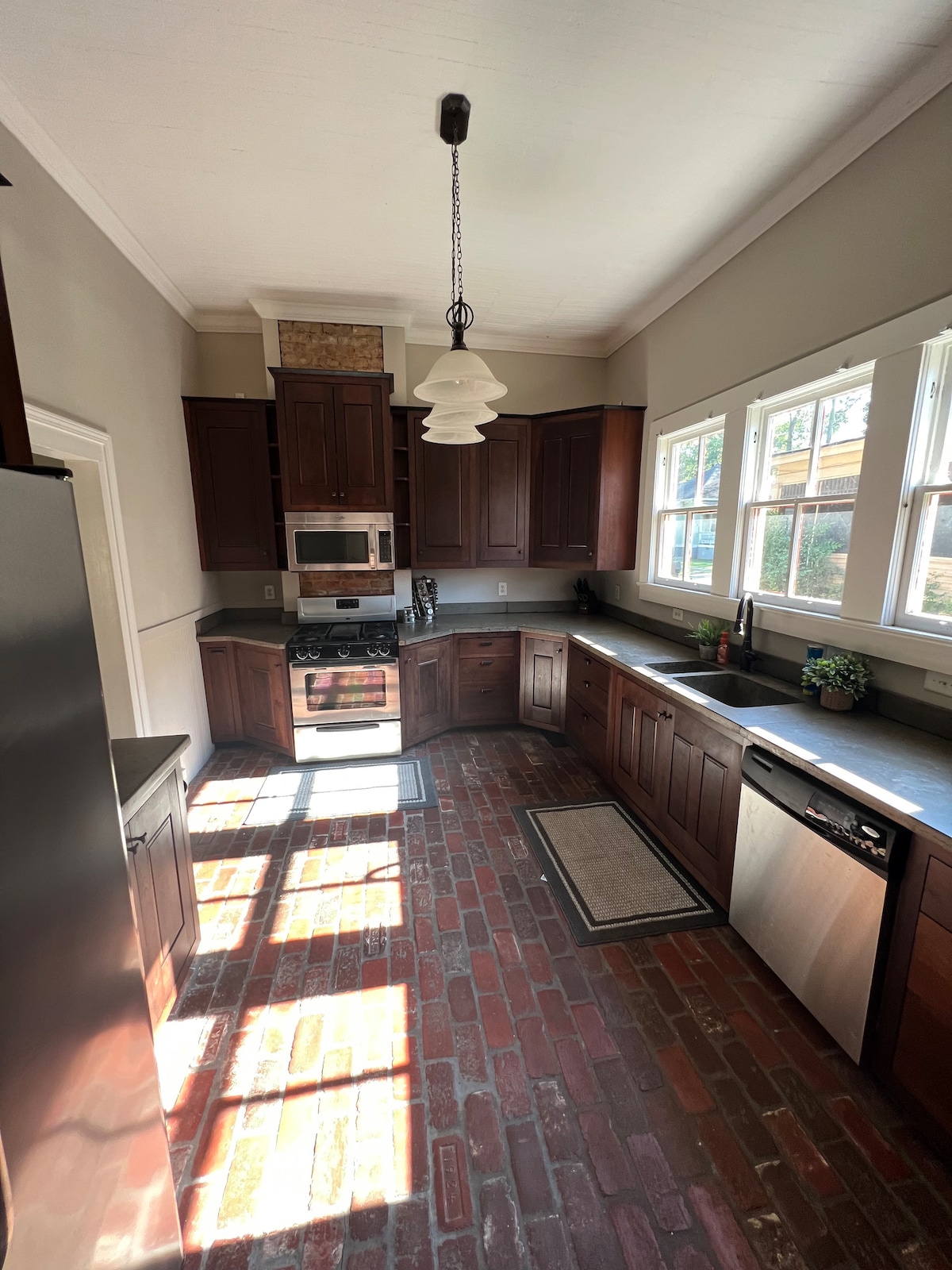 Your family will be close to everything when you stay at this downtown Cartersville home. Walk to all downtown shops and restaurants. Relax in the mornings drinking coffee on the attached screened in porch. Spacious parking lot behind home that is private and secure. Family friendly setup with a huge sectional couch that pulls out into a full queen sleeper with all needed linens and pillows. Coffee bar setup, dedicated workspace with printer, wireless wifi and tv’s in each room.