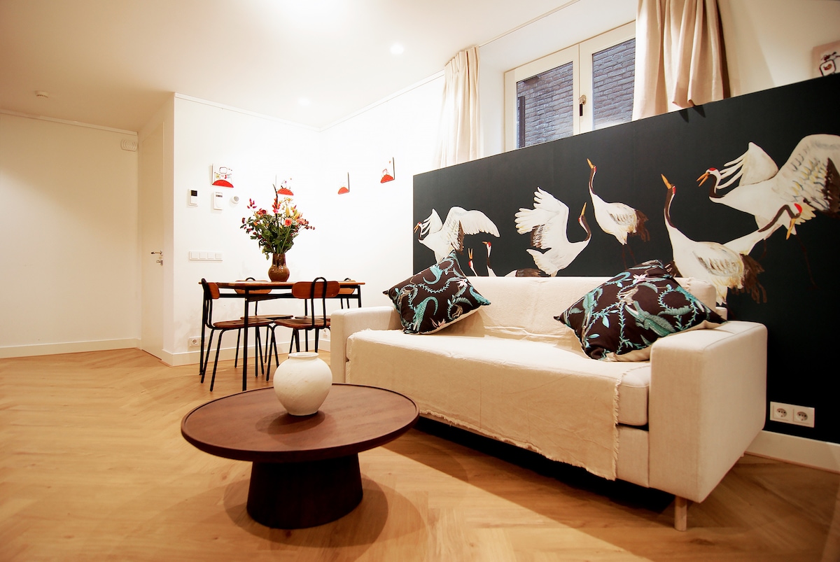 Este apartamento de 60 m2 es ideal para parejas en un viaje por Europa, es un verdadero hogar lejos de casa. Y es el lugar perfecto para explorar la ciudad de Utrecht. Además, también es un apartamento perfecto para parejas en vacaciones de trabajo, debido a los dos lugares de trabajo separados, 1 en el dormitorio y 1 en la sala de estar. Hay una fuerte señal wifi en ambos espacios, lo que hace posible las videollamadas. Este moderno apartamento de diseño en un edificio centenario (año 1584) se encuentra en el centro de Utrecht.