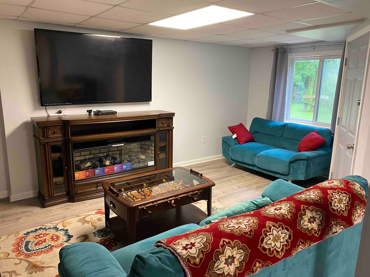 Olvídate de las preocupaciones en esta espaciosa y serena suite de invitados. Esta suite de nivel inferior ofrece entrada sin llave para el registro de entrada autónomo y es accesible por una vía privada para huéspedes. El plano de planta abierta ofrece una sala de estar, comedor, cocina y baño recientemente remodelados, mesa de billar y tablero de dardos, y un patio para disfrutar de un entorno tranquilo con un estanque y vida silvestre a la vista. Estamos a pocos minutos de muchos lugares para bodas, el Hospital Ascension, Pine Knob & Mt Holly, locales de música y tiendas.