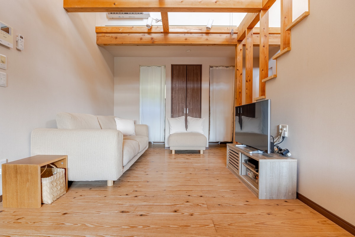 Amami Oshima, patrimonio de la humanidad A 15 minutos en coche del aeropuerto de Amami. Casa privada en la popular zona de Ryugocho, pueblo de Akoagi El calor de la brisa El techo es alto y las 4 habitaciones y el baño son espaciosos y perfectos para relajarse. La cocina es fácil de usar y puedes disfrutar cocinando Cultivamos hierbas y plantas únicas de la isla en el jardín🌿 Úsalo para cocinar, etc. A 4 minutos a pie del mar cercano (es posible que puedas encontrarte con tortugas marinas) Es un mar tranquilo y calmado con el que es fácil jugar para los niños. Snorkel en el mar azul. Cascadas ocultas, juega en el río Siente el amanecer y despierta con el sonido de los pájaros Contempla la hermosa puesta de sol Si miras al cielo nocturno, puedes ver el cielo estrellado. ¿Te interesa la increíble naturaleza de Amami Oshima? ・ ・ Vive como un habitante más. Ponte cómodo y relájate Una familia propietaria de Amami estará atenta * Valoramos el servicio y la comunicación con nuestros huéspedes, por lo que recomendamos reservar 2 noches o más. El espacio Sala de estar, cocina, dormitorio de estilo occidental, dormitorio de estilo japonés, dormitorio loft, baño, 2 aseos, terraza de madera