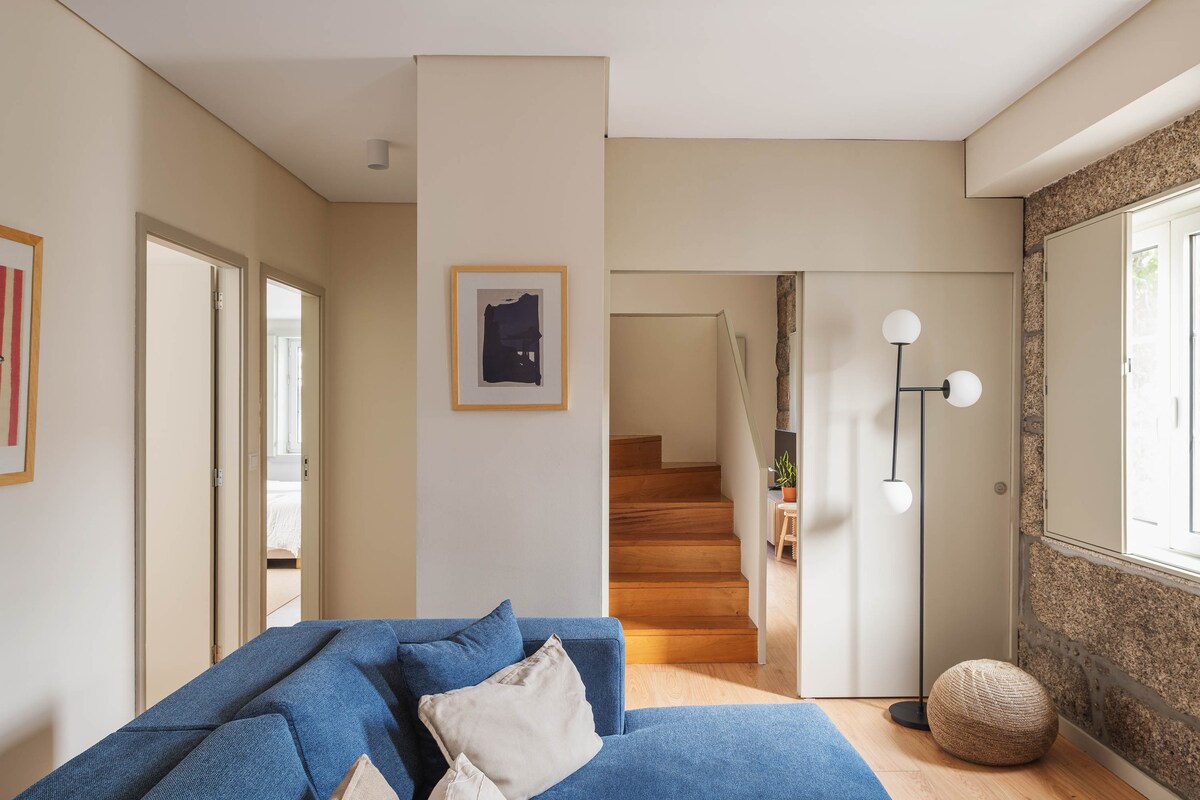 The splendid view over the river Tâmega In the flats of Casa do Fontanário Stay, you will find all the comfort, conveniences, and stories. Stories told by the Amarante drums, by the photographs of Eduardo Teixeira Pinto, or by the several elements allusive to the city's festivities that you can find in the House. But also by the smells, the sounds, and the fantastic views over the river Tâmega. This is one of the city's most characteristic buildings.