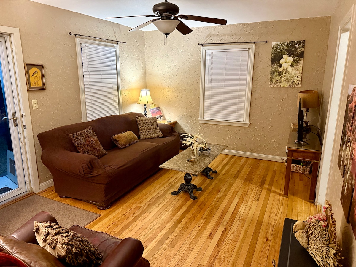 Relájate en este espacio de eficiencia tranquilo y elegante con estacionamiento privado en la entrada. Características modernas recientemente remodeladas con algo de carácter original de los años 50. Cocina pequeña con fregadero, nevera, microondas, horno de convección pequeño y una máquina de café keurig inteligente más nueva. Gran terraza al aire libre con un montón de zona de estar, estacionamiento privado fuera de la calle para 2 autos, estacionamiento lateral en la calle para vehículos/camiones grandes. Hermoso barrio tranquilo con ubicación céntrica y muy fácil acceso a la I-40 o la I-27