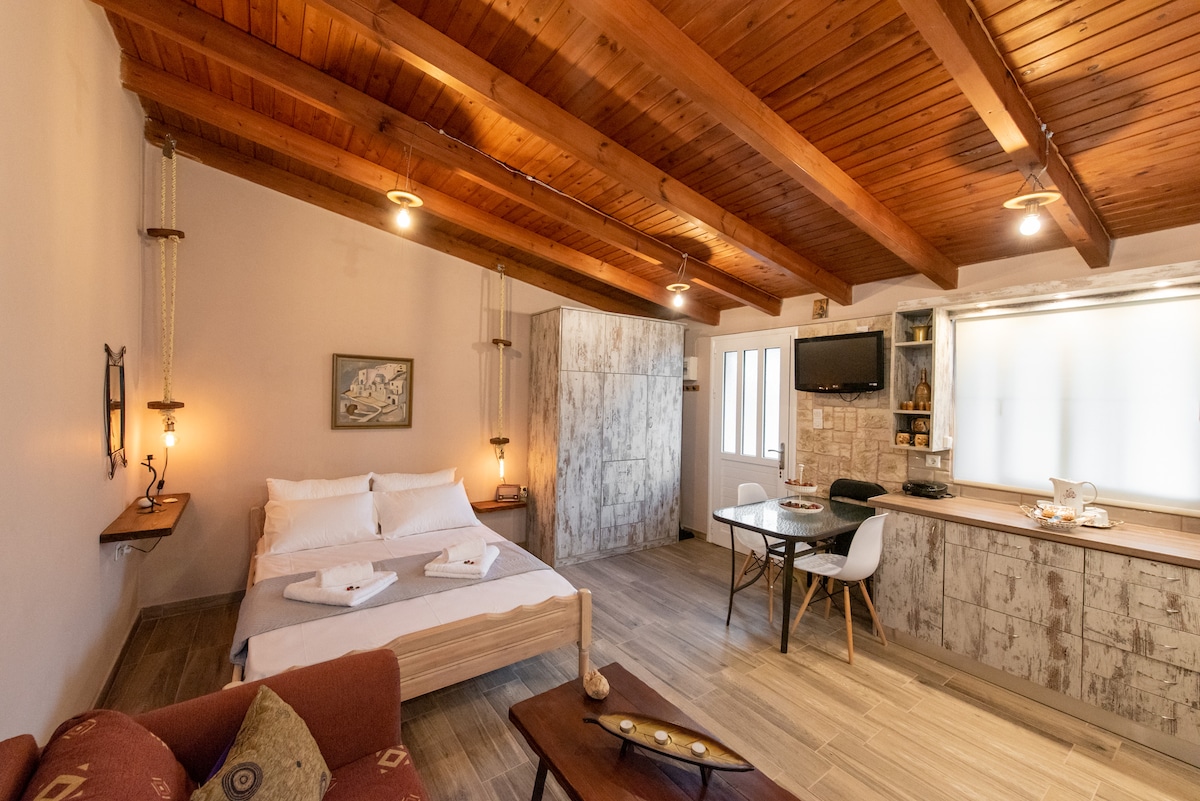 Experience timeless elegance at Afrodite Suite. Our meticulously designed suite offer the perfect blend of modern luxury with accents of ancient charm. Uniquely tailored with warm interior lighting and the glow of a fireplace, our suite creates a soft, whimsical environment. The property is equipped with avant-garde systems and plush bed for ultimate comfort. Enjoy your nights, relax by fireplace, and immerse yourself in local culture and hospitality.