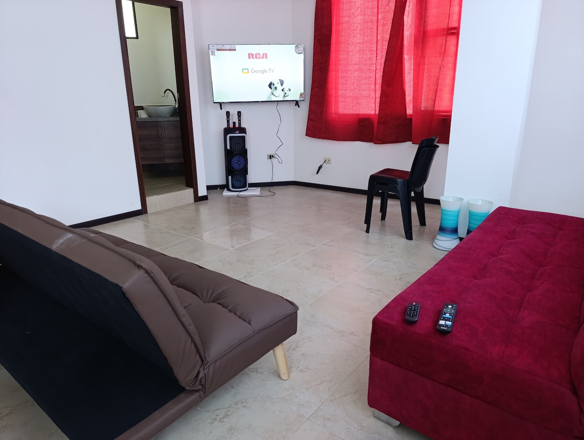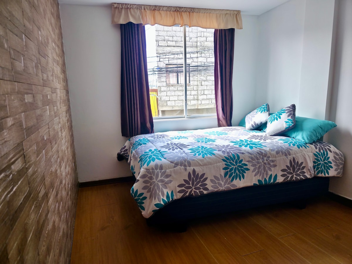 Disfruta de una estancia cómoda en "Mi Suite en Ambato", a solo 10 minutos del centro de la ciudad y al Mall de los Andes. Espacio moderno y funcional con cama doble, sofá cama, cocina equipada, baño amplio, wifi rápido y garaje privado dentro del alojamiento. Entrada independiente, ambiente tranquilo y seguro, con acceso a cancha de uso múltiple, cerca de parque, panaderías y supermercado. Ideal para parejas, viajeros o familias cortas que valoran la comodidad y el descanso.