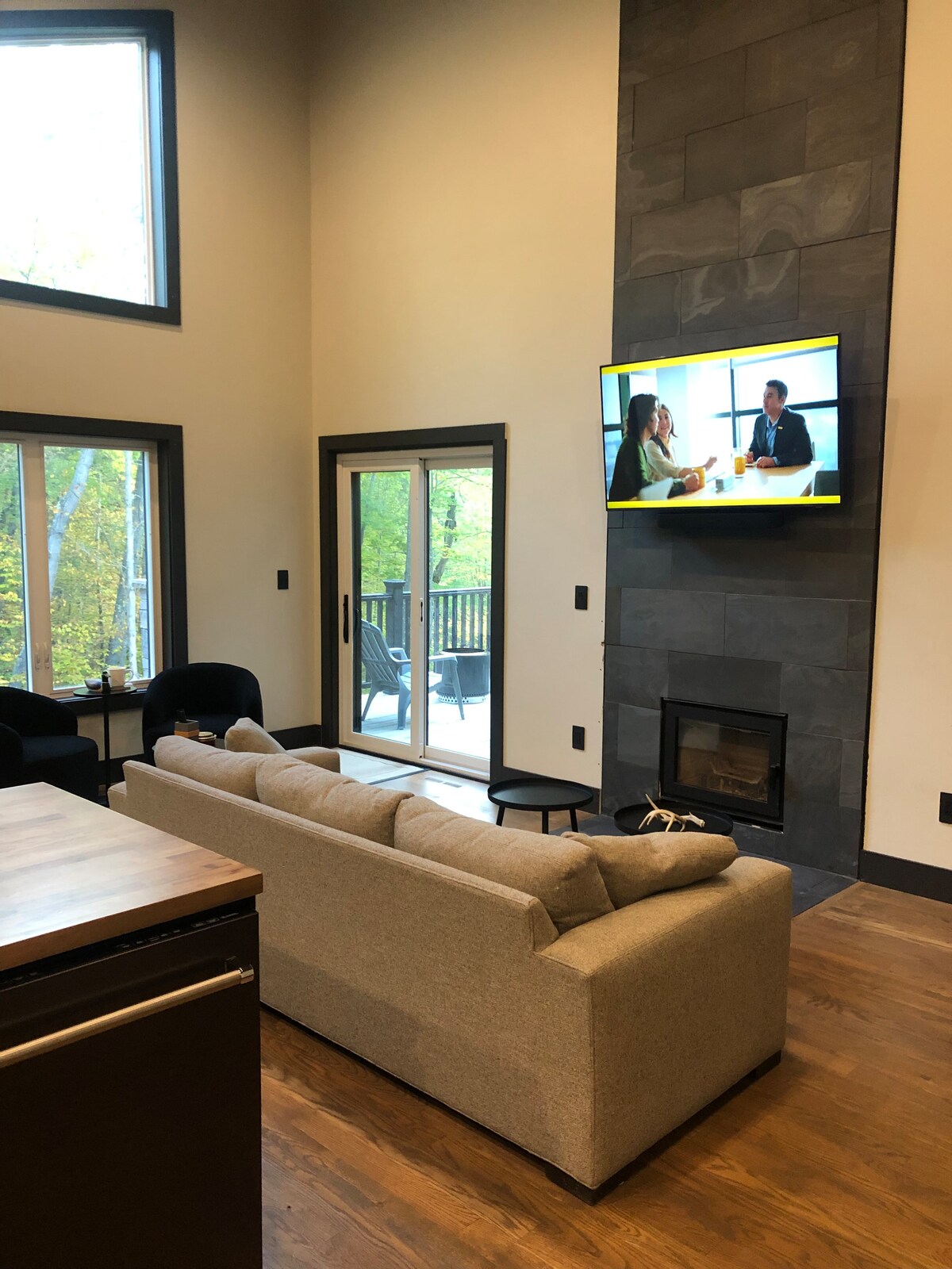 Escápate a este nuevo refugio de segundo nivel ubicado en el bosque, a pocos pasos de un lago sereno y tranquilo. Ideal para familias o grupos pequeños, esta tranquila escapada cuenta con dos acogedores dormitorios, uno con una cama tamaño queen y el otro con dos juegos de literas. Disfruta de una chimenea de leña interior o relájate al aire libre en la terraza. Con senderos, lagos, ríos y parques estatales cercanos, te esperan aventuras al aire libre, ya sea senderismo, pesca, esquí o navegación.