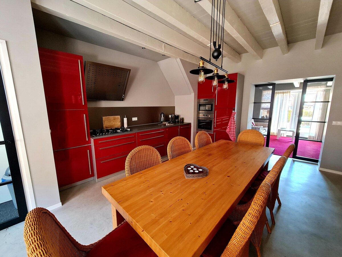 ¡Te damos la bienvenida! Ambiente es lo que dice la palabra, AMBIENTE. Hemos remodelado por completo esta casa en 2022 según los estándares de hoy. Enyesado elegantemente por fuera, un jardín soleado bellamente ajardinado, con un dosel y un delicioso jacuzzi de leña (madera ilimitada) y cocina al aire libre. En el interior encontrarás calidez, comodidad y, por supuesto, AMBIENTE. El ambiente se encuentra en el centro, a 2 minutos de la panadería y del supermercado, la playa y el bosque a 10 minutos. ¡Hospitalidad y tiendas a la vuelta de la esquina!