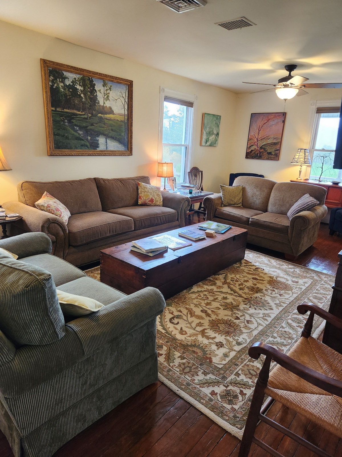 The Old Parsonage is the perfect place to spend your get-away days. you can even work from this "home away from home". We have installed high speed internet and TV, so you can stay Remote and Connected. Consider staying a week... or two! With spectacular views of the Blue Ridge Mountains in every direction, and a big country breakfast with fresh eggs from our free range chickens, you will feel right at home as soon as you arrive. Melt into the peace and beauty of Central Virginia.
