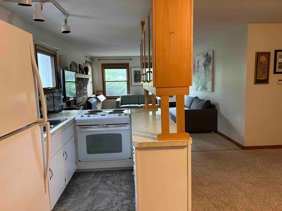 Newly restored 2nd-floor apartment in 175-year-old home 2 blocks from Amherst Cinema & steps to everything this vibrant downtown has to offer. Walking distance to Amherst College and UMass. This home retains the character of days gone by, yet sparkles with new wood floors, modern bathroom & new appliances. Original wood-paneled entry hallway & exposed beams throughout. Antique furnishings, historic wall decor, and a sunny kitchen with built-in reclaimed wood bar. Small balcony w seating for 2.