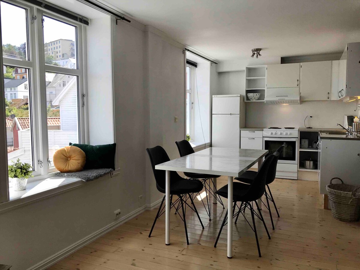 Acogedor apartamento con vistas panorámicas del parque Selvaag. A 100 metros a pie de Brooklyn Square, donde puedes disfrutar de una buena comida en Larsen Bakery o en Holy Cow. 1 dormitorio. El sofá cama en la sala de estar se puede convertir en una cama doble Un total de 4 lugares para dormir. No se proporcionan sábanas/toallas, pero se pueden alquilar por 100 kr por huésped. Luego, la cama está lista antes de la llegada y viene con una toalla grande y una más pequeña.