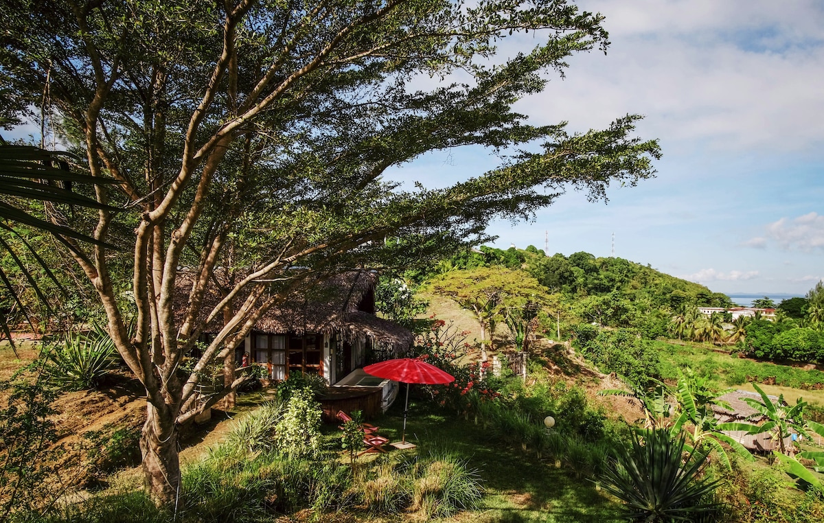 Ideal para los amantes de la naturaleza, nuestra selva privada de 2 hectáreas es un santuario diseñado en el corazón del hábitat natural de los lémures. Con vistas al pueblo a una altitud de 70 metros, contemplas la mirada, desde tu cama o desde la ducha al aire libre, de la Reserva Nacional Lokobe ubicada al otro lado del brazo del mar.