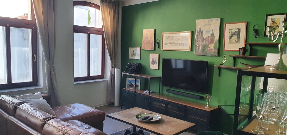 ¡Bienvenido a Riverside Apartment Erfurt! El apartamento de 3 habitaciones (78 metros cuadrados) tiene una ubicación única en el corazón del casco antiguo, detrás del ayuntamiento y justo al lado del río: muchos lugares de interés, como la catedral o el puente Krämerbrücke, están a pocos minutos a pie. Las parejas, las familias y los viajeros de la ciudad disfrutan de las cómodas y elegantes instalaciones, así como de la proximidad a tiendas, instalaciones culturales, cafeterías y restaurantes. > También puedes echar un vistazo aquí: airbnb.com/h/riversidepenthouseerfurt <