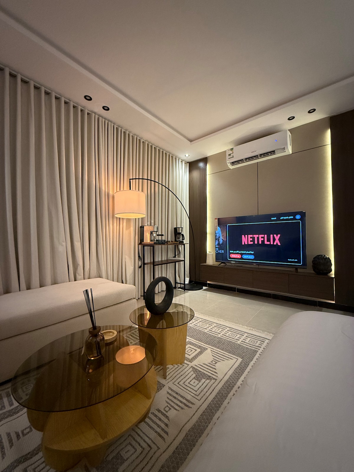 شقة فاخرة | شاشة 65" | دخول ذاتي | مساحة للعمل